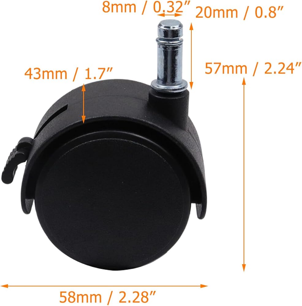 • ⚫︎Caster Size: 57 x 58 x 43mm / 2.24" x 2.28" x 1.7"(L*W*H); Stem size: M8x20mm(Stem Diameter: 8mm / 0.32"; Stem Length: 20mm / 0.8")
