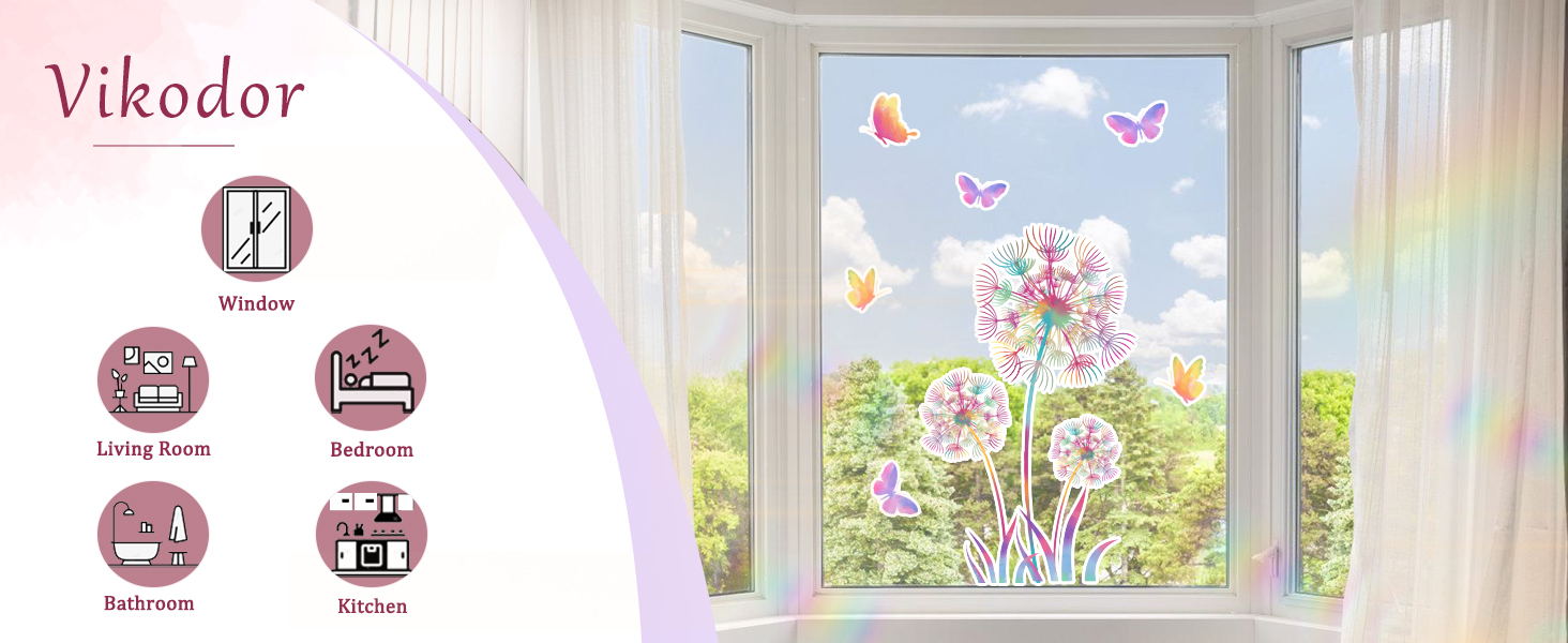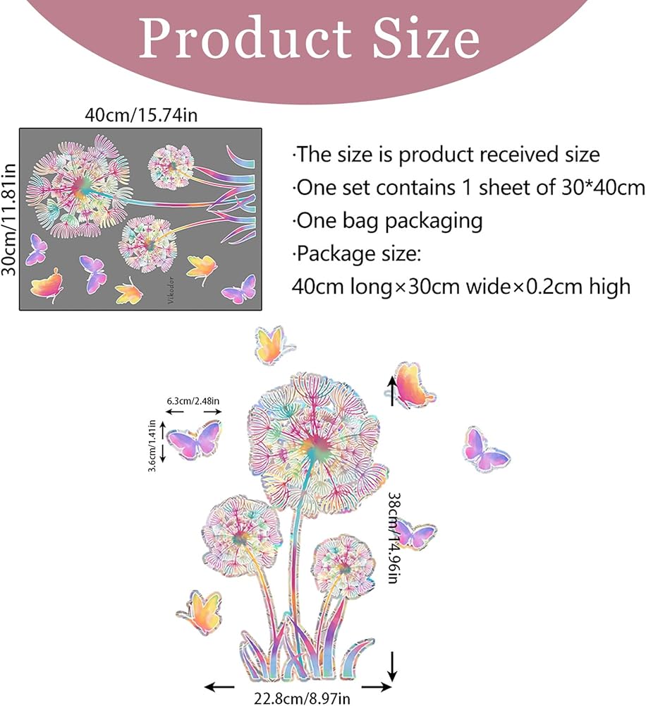 • ✅ 【 رؤية على الوجهين 】 - توفر ملصقات النوافذ الزنبركية الساكنة على شكل زهرة الهندباء بالليزر بألوان قوس قزح رؤية على الوجهين، مما يضمن الجمال في الداخل والخارج.