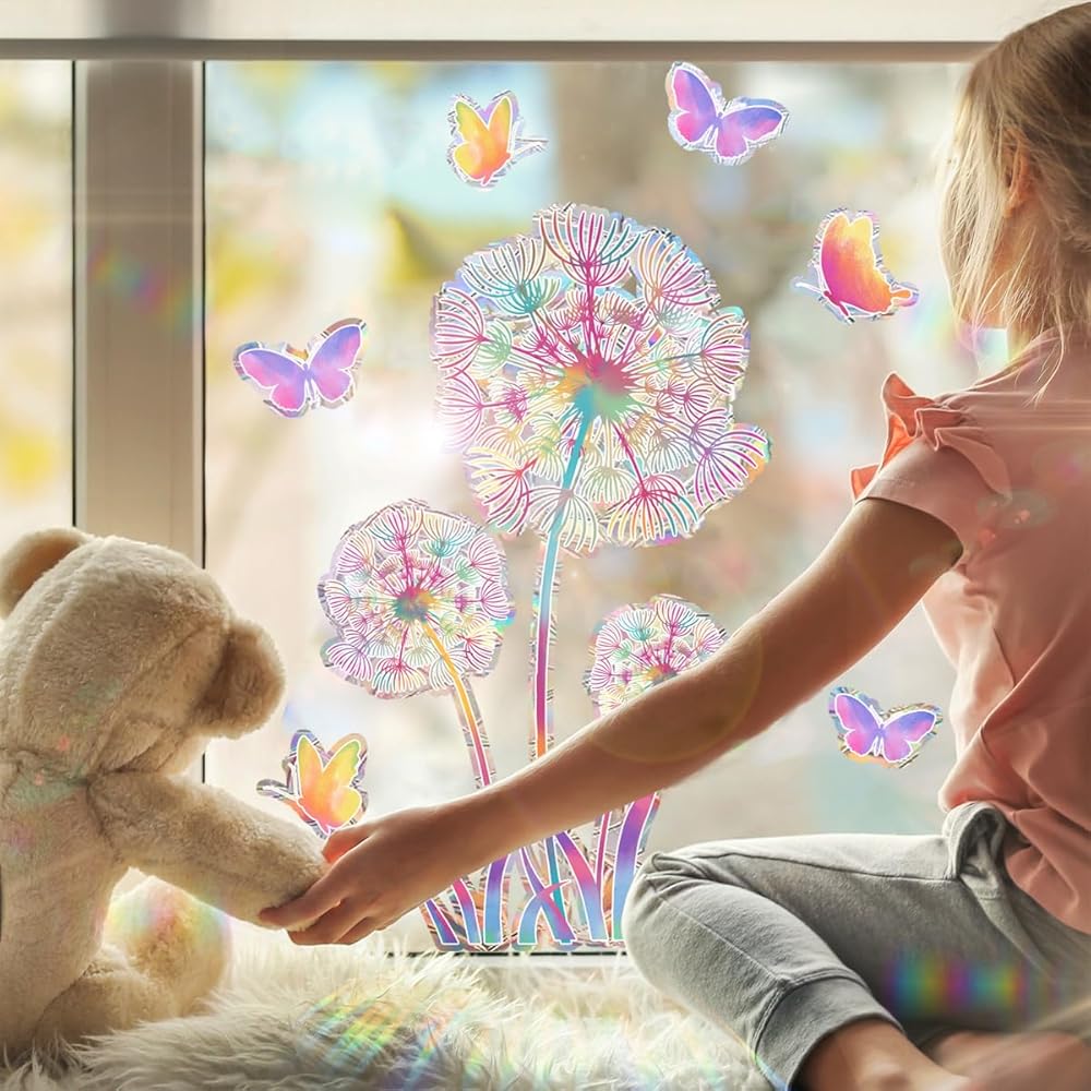 • ✅ 【 انعكاس قوس قزح 】 - استمتع بتجربة مشهد من الألوان حيث يتفاعل ضوء الشمس مع ملصقات نافذة الهندباء الملونة، مما يخلق أنماط قوس قزح ساحرة ترقص عبر غرفتك.