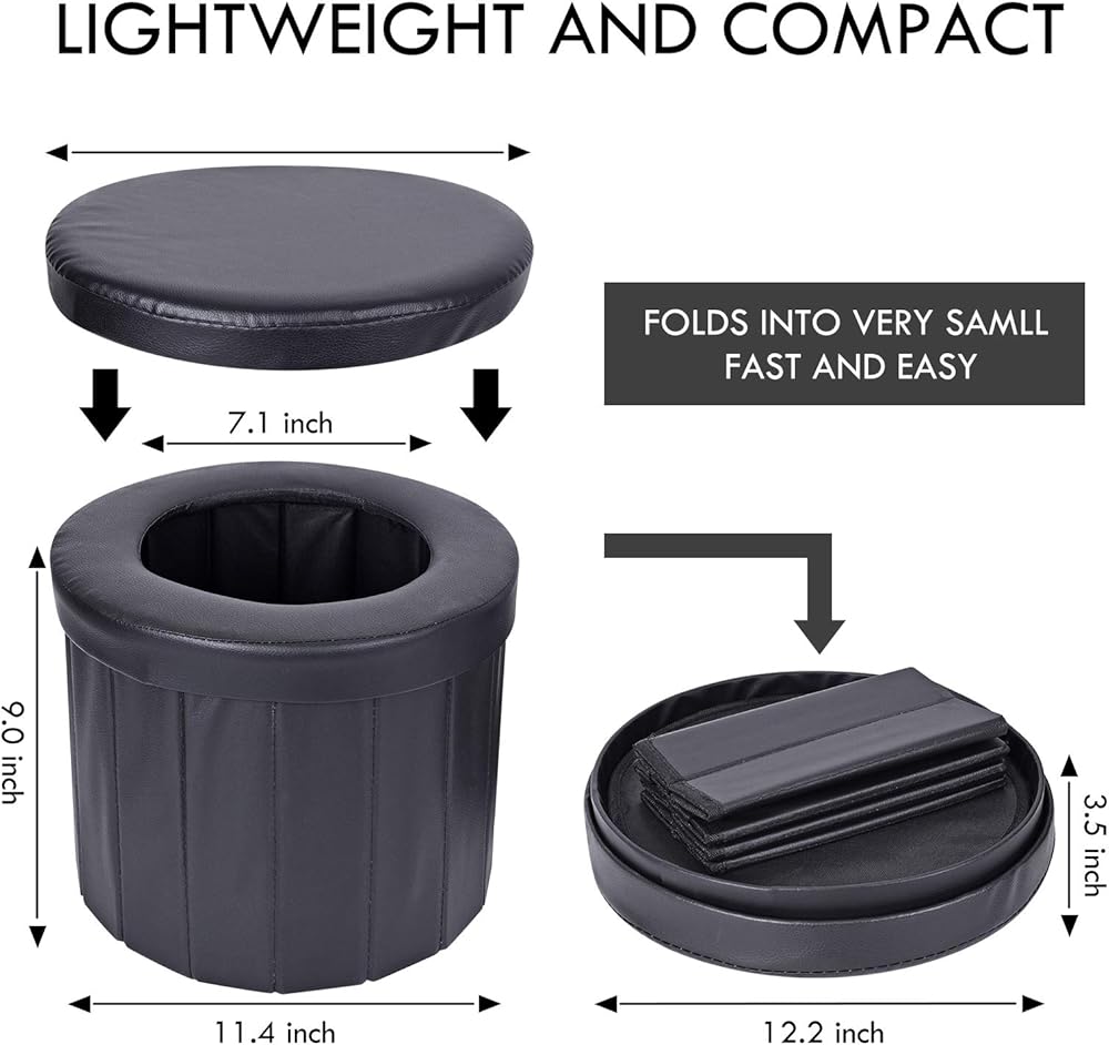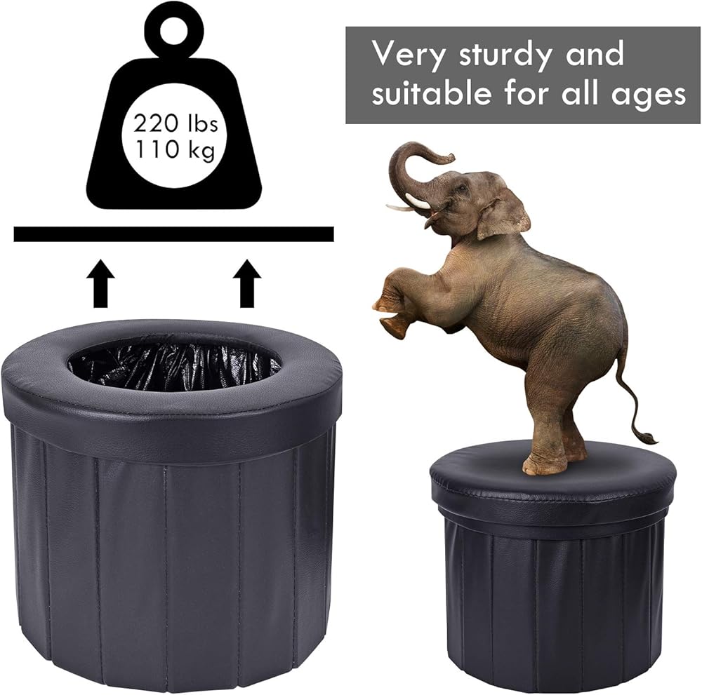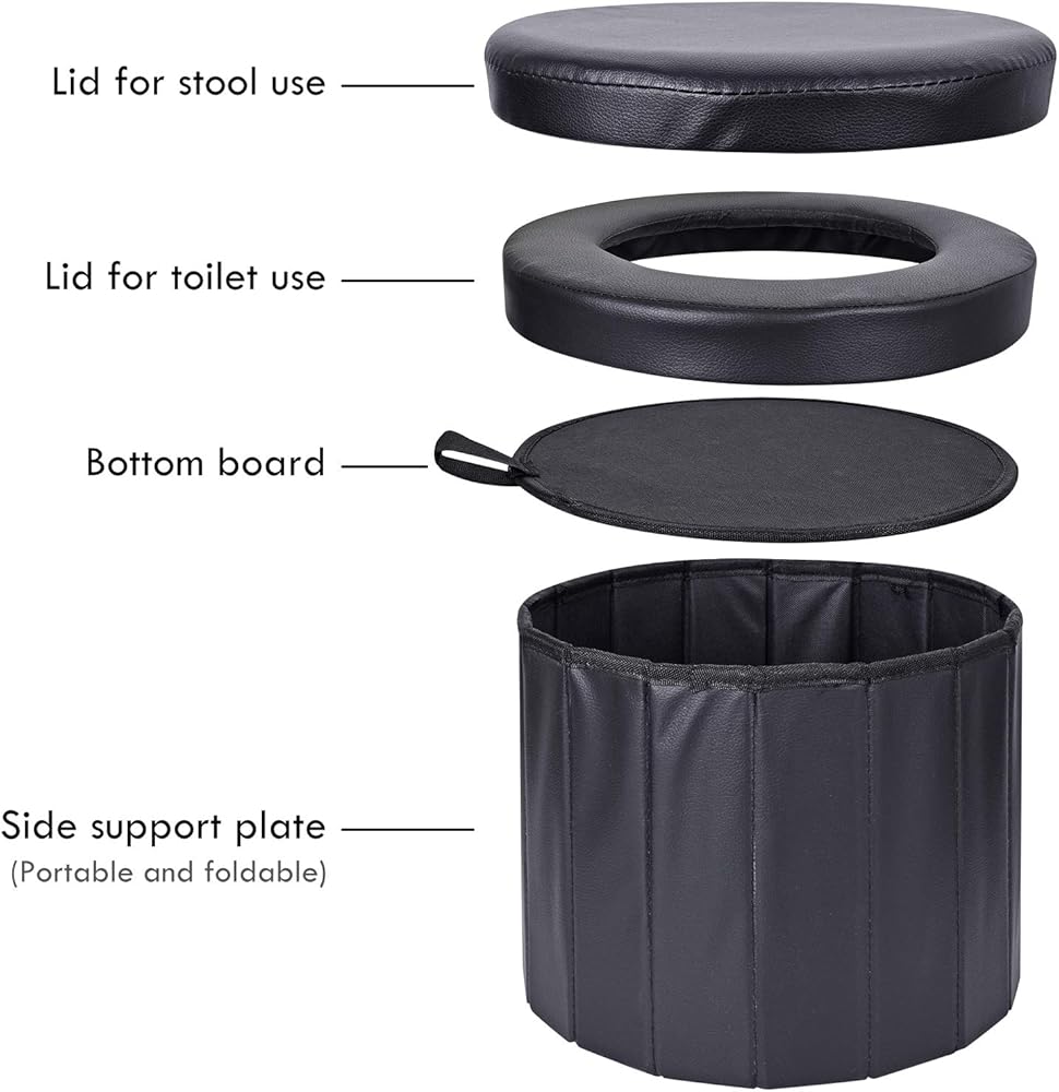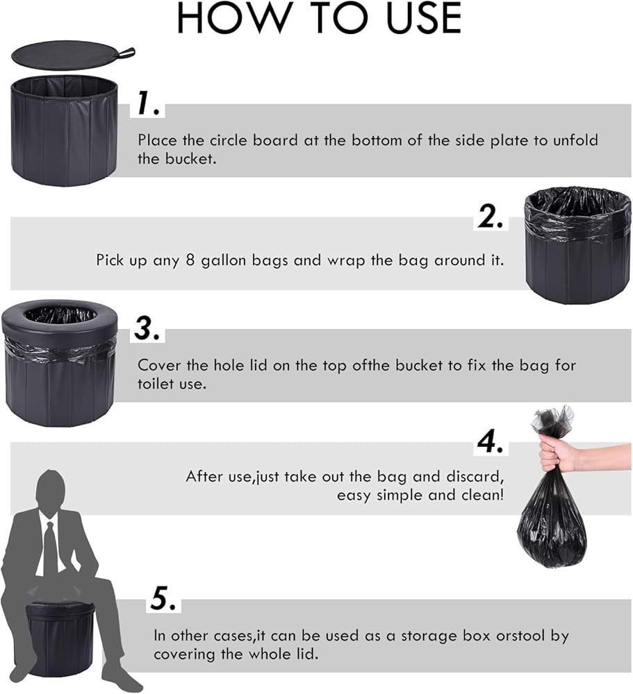 • نظيف ومناسب: يمكن تغليف هذا المرحاض القابل للطي بالكامل بأي كيس قمامة بسعة 6-8 جالون، ولا يحتاج إلى التنظيف بعد كل استخدام.