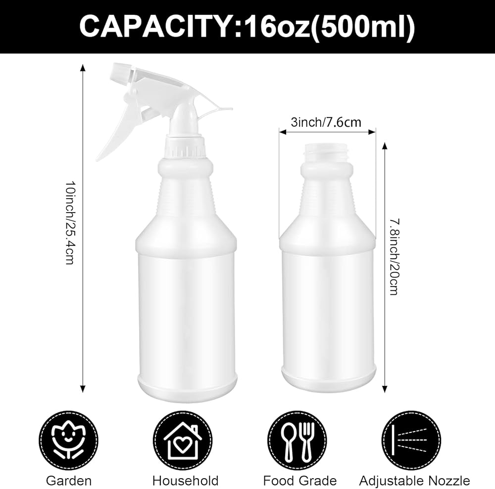 الحجم والسعة: قطر زجاجات الرش الفارغة تقريبًا. 6.7 سم/ 2.64 بوصة، الطول تقريبًا. 26 سم/ 10.24 بوصة، والسعة 500 مل/ 16 أونصة، حجم مناسب لتلبية احتياجاتك المتنوعة