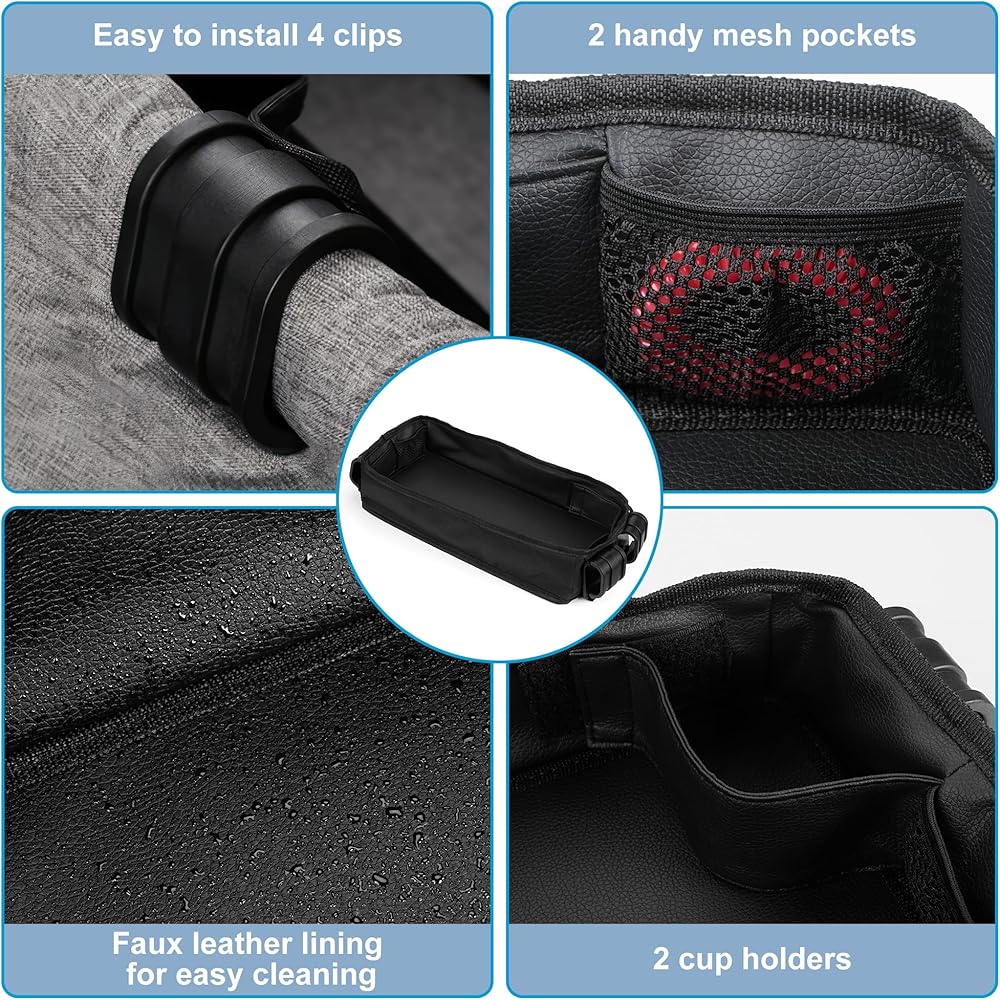 • 【Perfect Stroller Accessory】EKEPIN Stroller Tray allows you to enjoy snacks and activities anytime, anywhere. Its faux leather surface is easy to clean after snacks, while the durable polyester surface provides long-lasting entertainment, making your child satisfied.