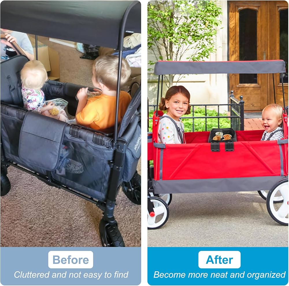 صينية عربة الأطفال EKEPIN لسلسلة Wonderfold Wagon W، صينية عربة أطفال مزدوجة الجوانب وجوانب من الجلد الصناعي مع حاملي أكواب وإكسسوارات عربة لأنشطة تناول الطعام والتخييم (نماذج W2)