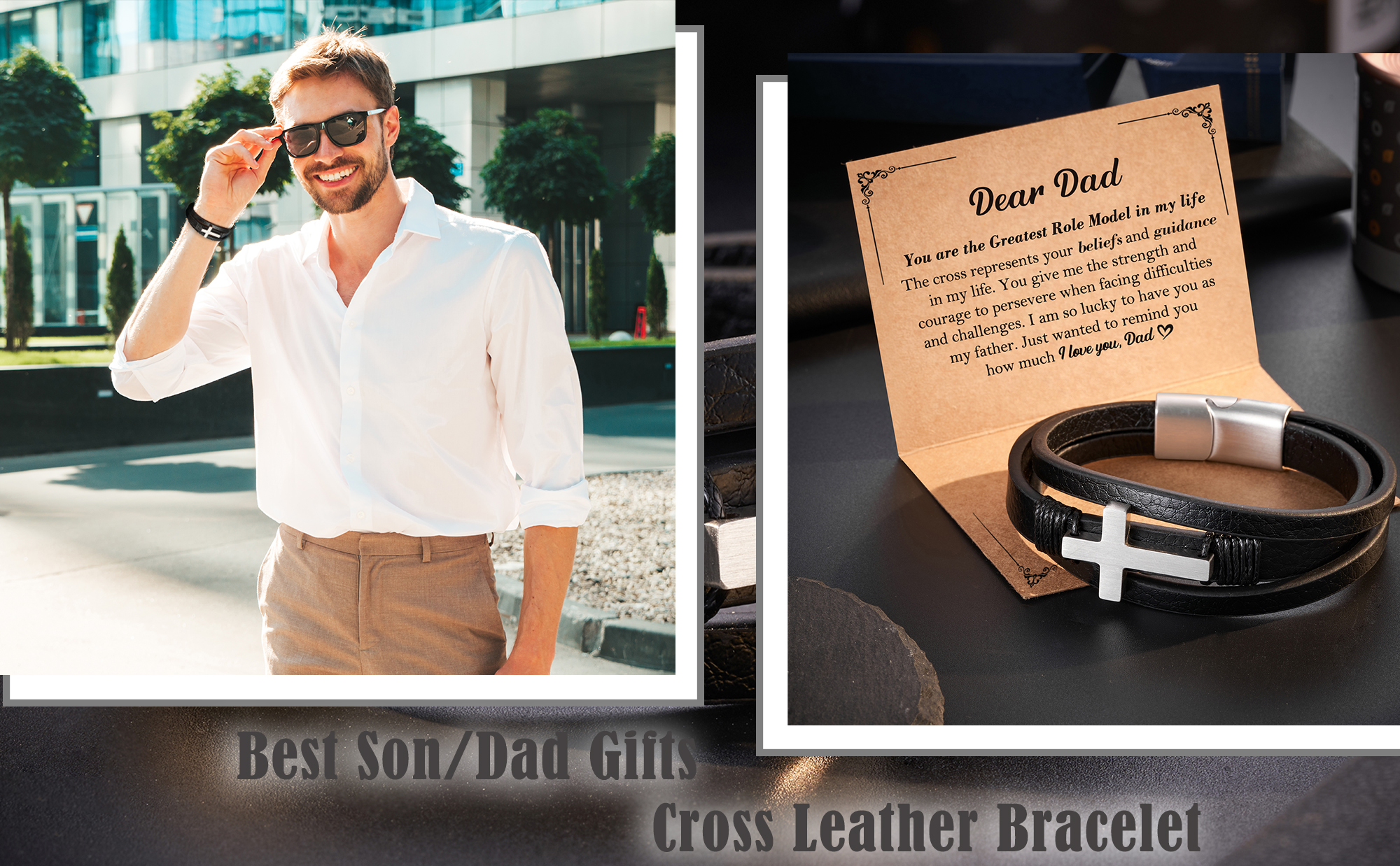 • هدية احتفالية مدروسة - أظهر تقديرك للأب أو الابن من خلال سوارنا الجلدي الرائع، الذي يرمز إلى رابط الحب والرعاية، مثالي لعيد الميلاد وعيد الفصح وعيد الأب وأعياد الميلاد والمزيد