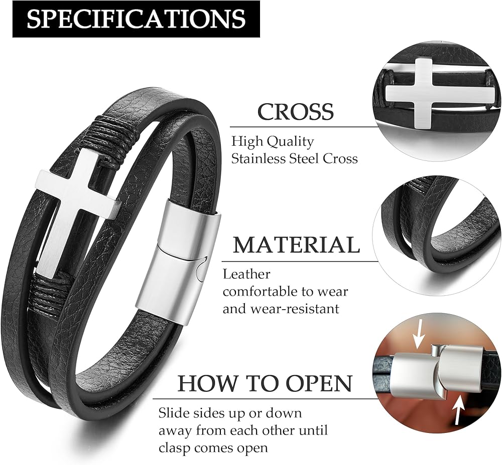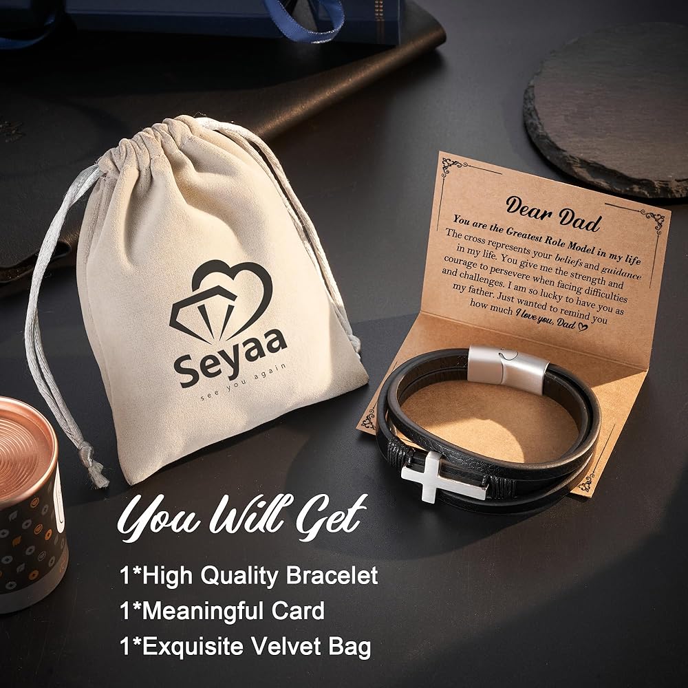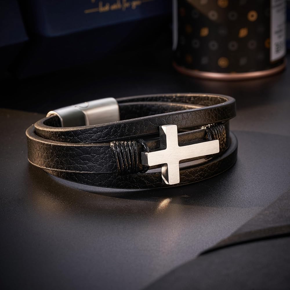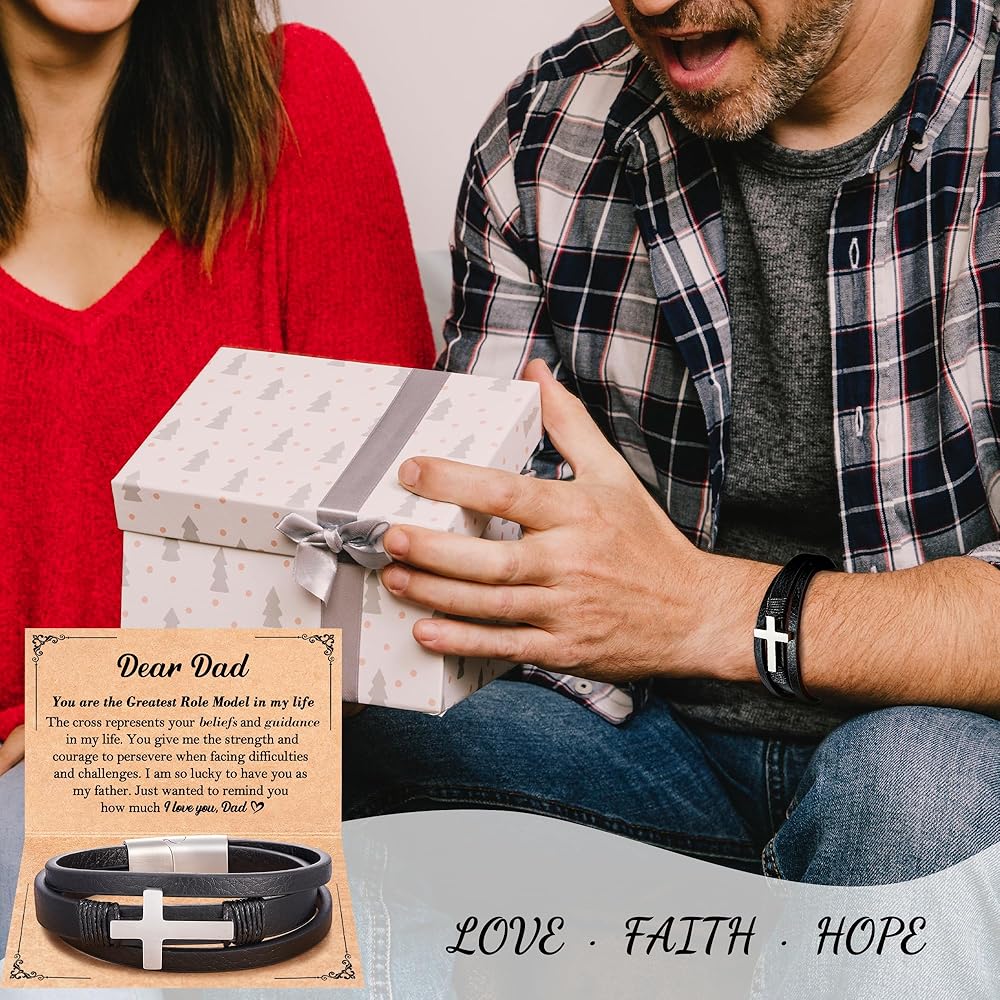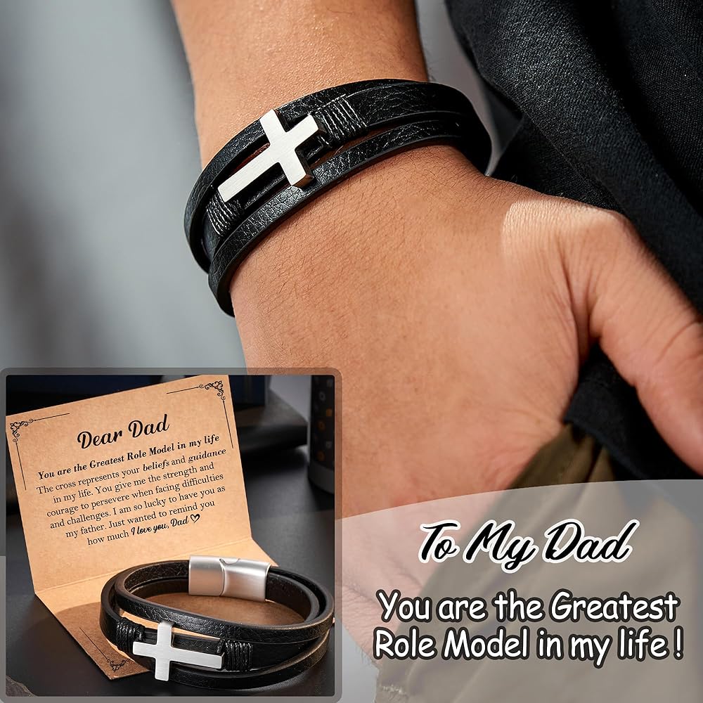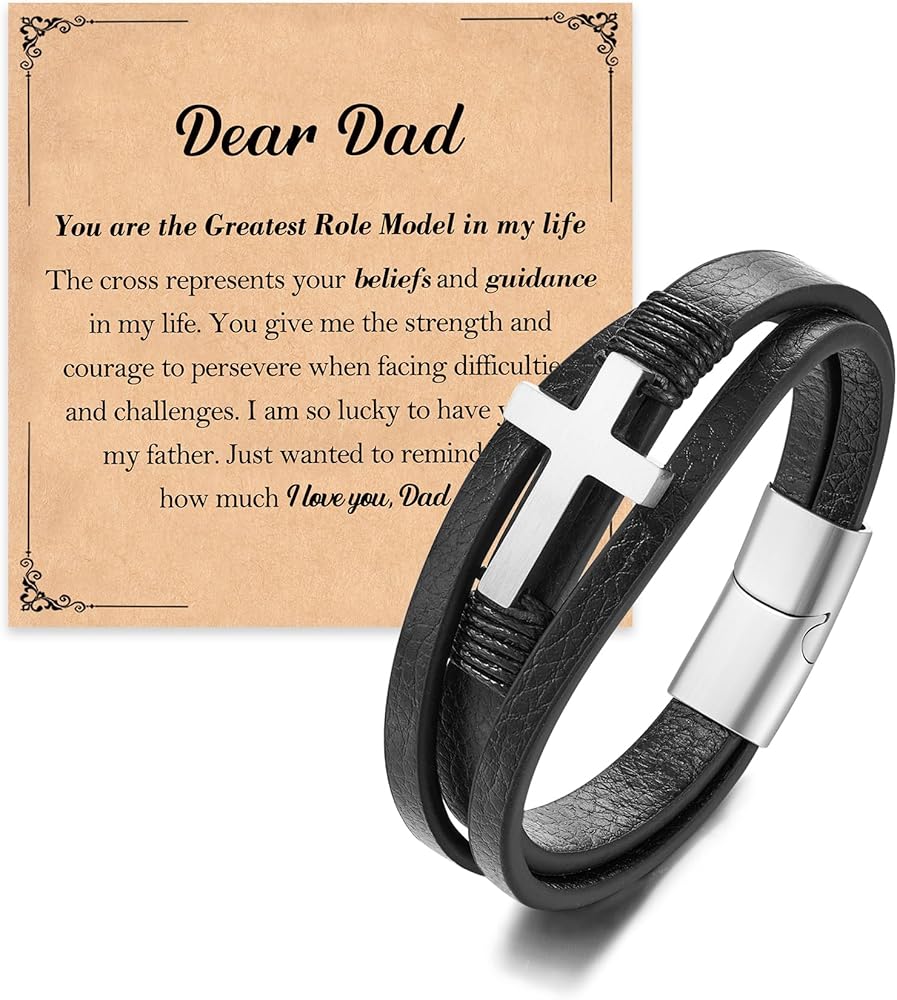 • سوار الصليب - يرمز الصليب إلى الإيمان والتضحية والفداء. إنه يدل على الحماية والأمل والتوجيه خلال الأوقات الصعبة. إنها هدية قلبية لوالدك، تعبر عن الحب والتقدير والدعم الروحي