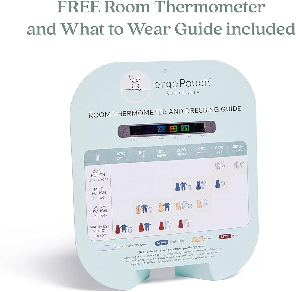 • FREE ROOM THERMOMETER & WHAT TO WEAR GUIDE - Parents can follow the FREE room thermometer and What to Wear guide provided with the product, to layer appropriately underneath to keep their child warm. We recommend pairing this pouch with one of our TOG-rated Rompers, or Pajamas underneath (all sold separately)!