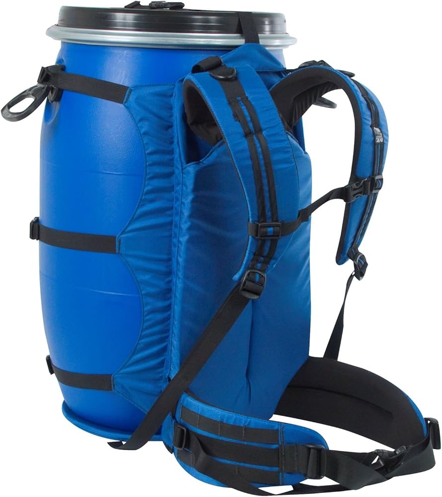 Barrels have become popular as food containers for canoe tourists because they are waterproof, seal out food smells, and are difficult for bears to break into. The vapor Flatbed Barrel Harness is the most comfortable way to carry a barrel, large dry bag or other odd loads from Chainsaws to jerry cans. The padded hip belt features hip stabilizer straps and is available in several sizes for a custom fit. The wide shoulder straps feature a slider sternum strap and load lifter straps for the ultimate in comfort and adjustability. The padded bottom absorbs some of the impact and prevents scratches in your canoe and makes a great stool to sit on when turned upside down. Works with a 30 liter or 60 liter barrel.