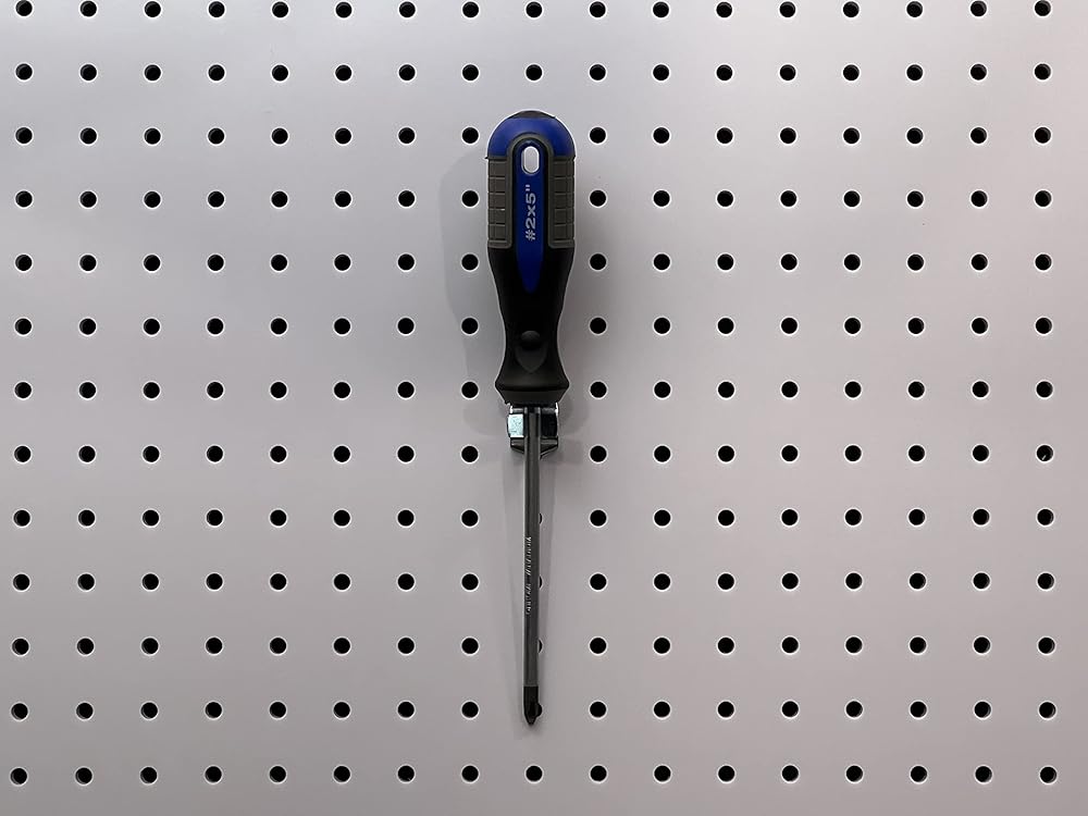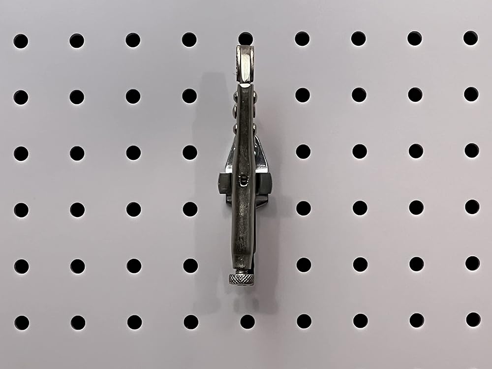 These double-locking, zinc plated steel hooks mount vertically and horizontally in 4 distinct positions; Includes 1/8-Inch and 1/4-Inch Screws for DuraBoard, HDF, or any round hole pegboard (excluding metal)