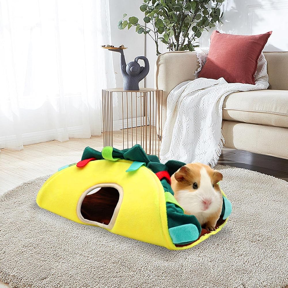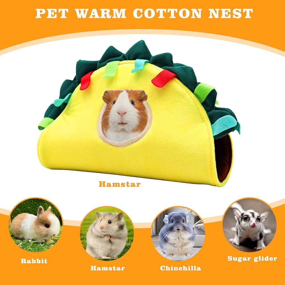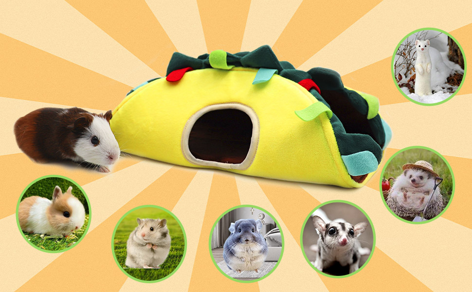 🐹【الحجم والملاءمة】: 12.59*7.48*4.33 بوصة/32*19*11 سم (الطول*العرض*الارتفاع). عش نفق الخنازير الغينية الخاص بنا مناسب على نطاق واسع لجميع أنواع الحيوانات الأليفة الصغيرة، مثل الفئران والشنشيلة والهامستر. والقنافذ والأرانب والقوارض والطائرات الشراعية والسناجب وما إلى ذلك مناسبة لهم للنوم والاختباء والراحة والترفيه.