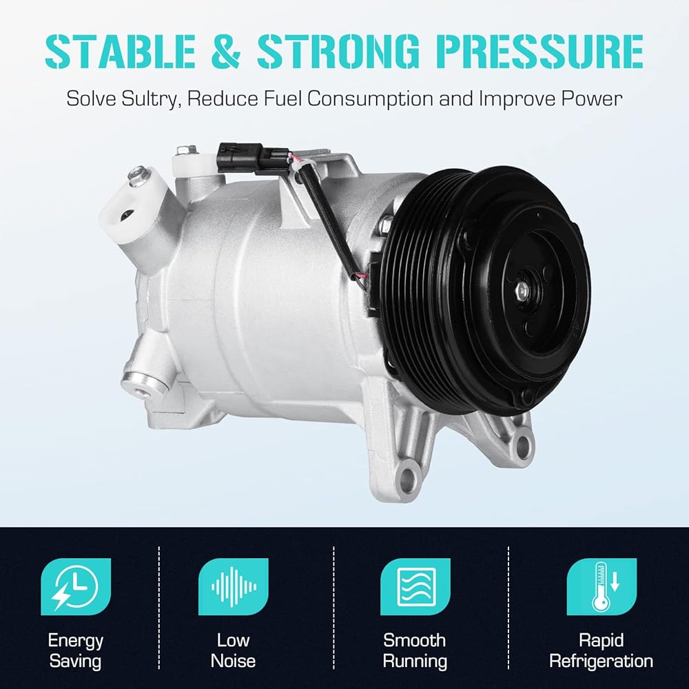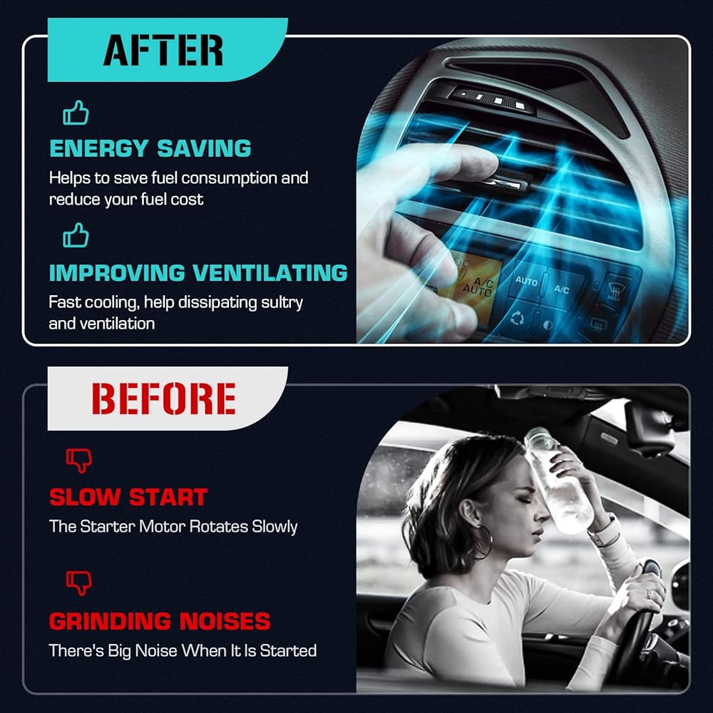 【Energy Saving & Low Noise】The AC compressor works steady and efficient under a low noise condition, provide you with a chill nice and cold ride. Under a lower load factor, low power will be input when driving at high speed, which increases fuel economy and makes operation smoothly.