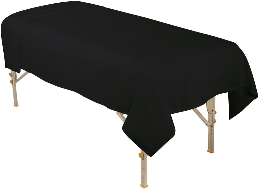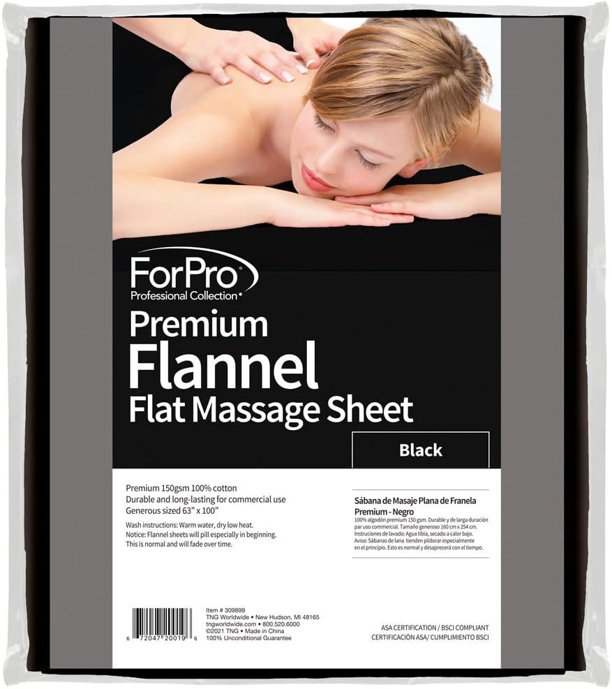 ملاءة مسطحة من الفانيلا الفاخرة من مجموعة ForPro Professional لطاولات التدليك، خفيفة للغاية، مقاومة للبقع والتجاعيد، 63 بوصة عرض × 100 بوصة طول، أسود