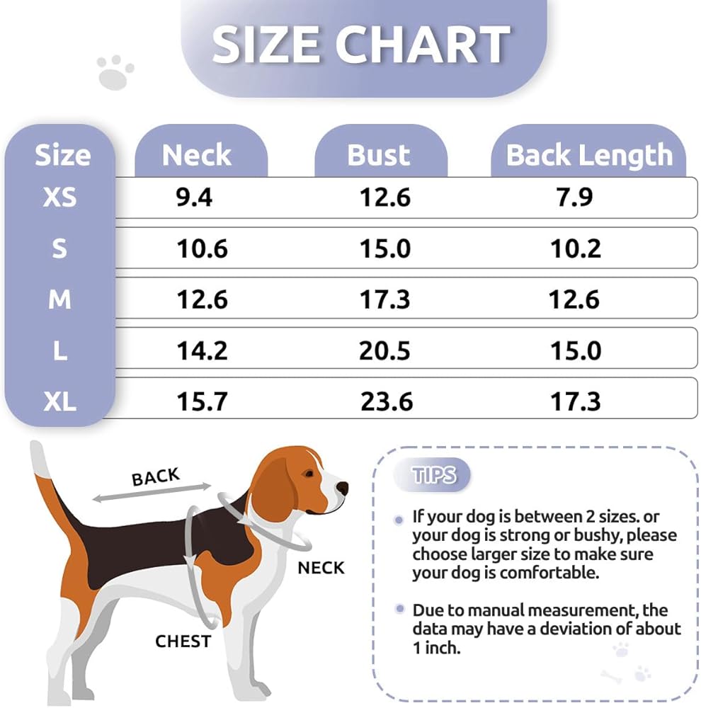 • 【Size Choice】Our dog sweaters have 5 sizes (XS, S, M, L, XL) to fit most breeds including Chihuahua, Poodle, Bulldog, Yorkie and more. Please refer to the size chart to choose, if your dog is between two sizes, we suggest to choose the larger size.
