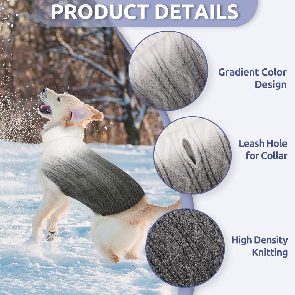• 【Gradient Color】The small medium dog sweater features a dense and tightly knit texture with unique Gradient Color to give your pet dog or cat a unique style and personality. Available in four colors and four sizes, it fits most cats, dogs, girls and boys.