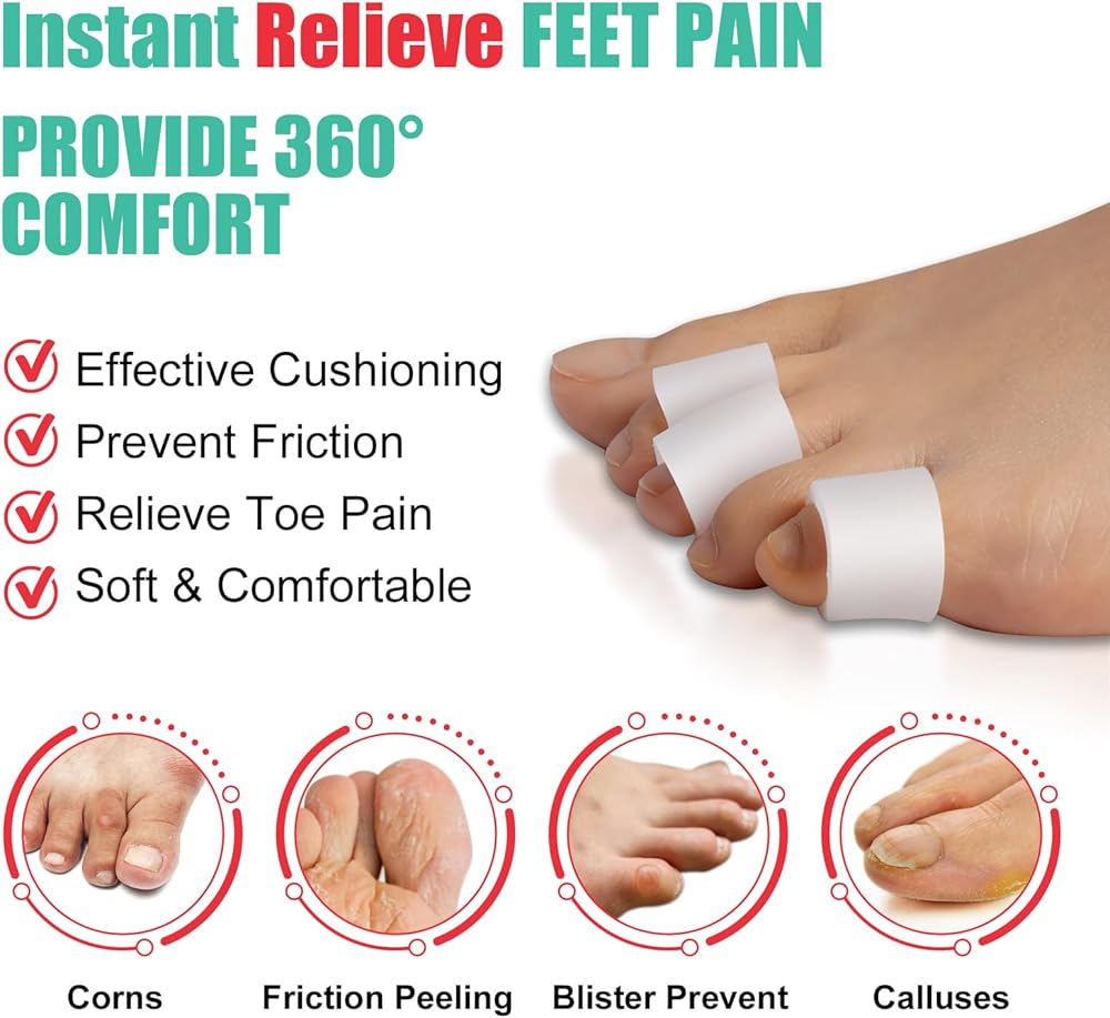 ✨ [توسيد فعال]: توفر أغطية أصابع القدم التوسيد بين أصابع القدم والأحذية، وتحمي أصابع القدم من الاحتكاك. يمكن استخدامه لفترة طويلة دون أن يسقط بسهولة، مما يوفر حماية آمنة ومريحة.