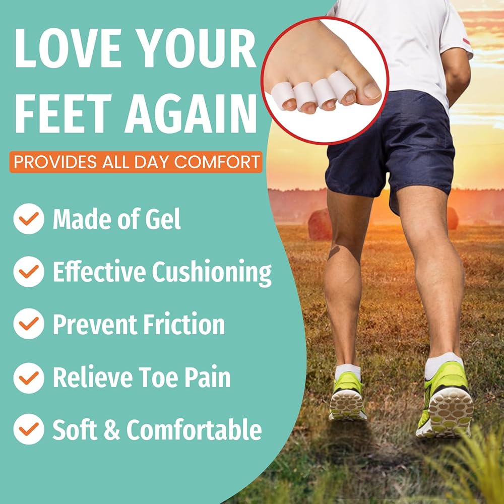 أكمام لأصابع القدم، (5 عبوات) واقي لأصابع القدم الخنصر، أغطية أصابع القدم قابلة للقص مع مستخلص الصبار، أنابيب هلامية لأصابع القدم للوسائد، والبثور، وأصابع القدم المطرقة، وفقدان أظافر القدم