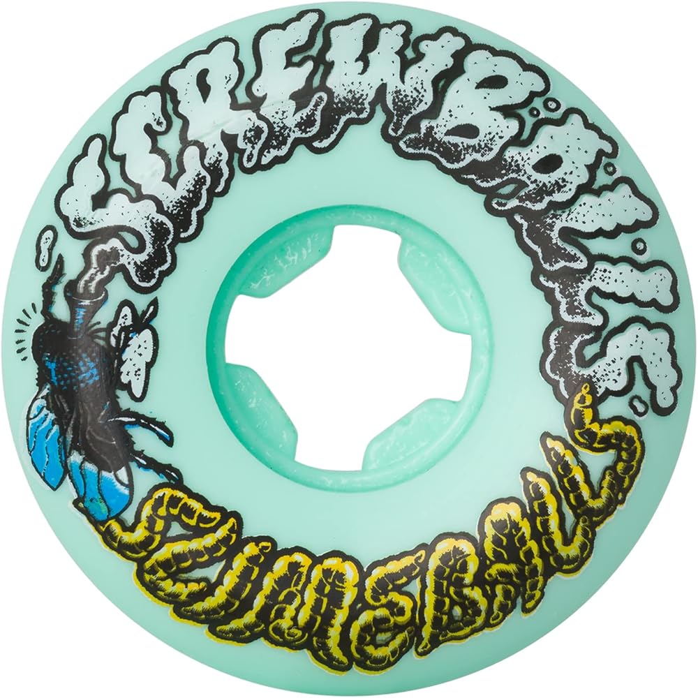 Slimeballs Screw Balls Speed Balls wheels feature graphic art by Falu based on the original art by Jim Phillips on a hard, conical edge shape for firm coping lock, wide riding surface and high performance 99a urethane. 53mm x 31.25mm, 99A.