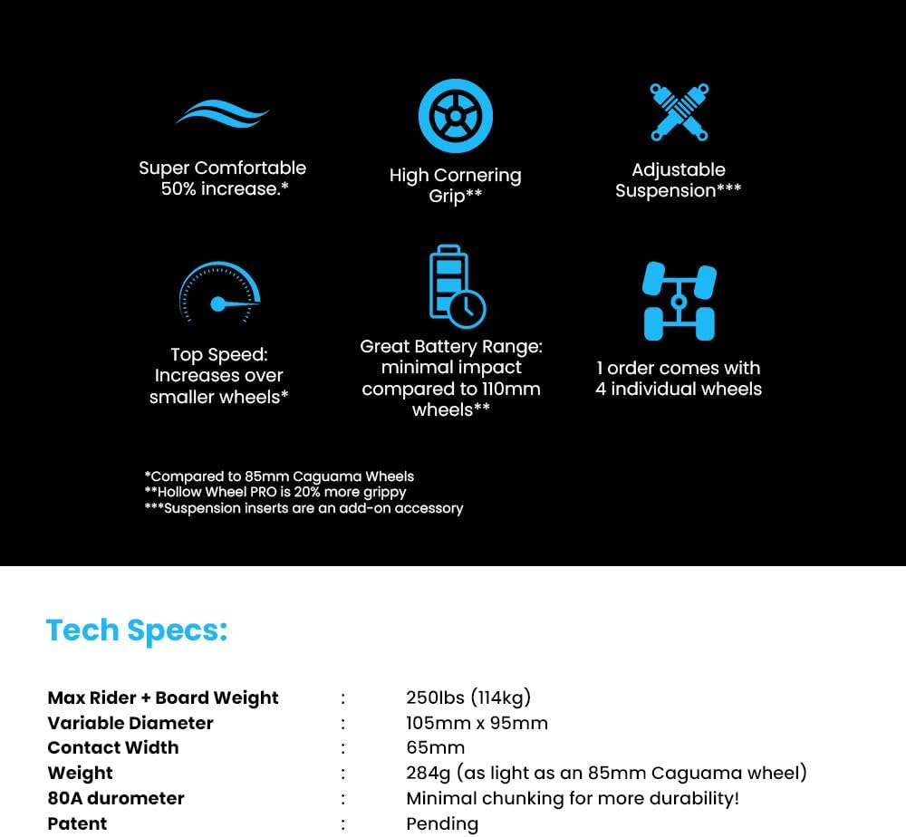 عجلات هولو ويلز ماكس كومفورت الكهربائية لألواح التزلج | Boosted، Exway، Meepo، Backfire، Evolve، Wowgo، Tynee Longboard