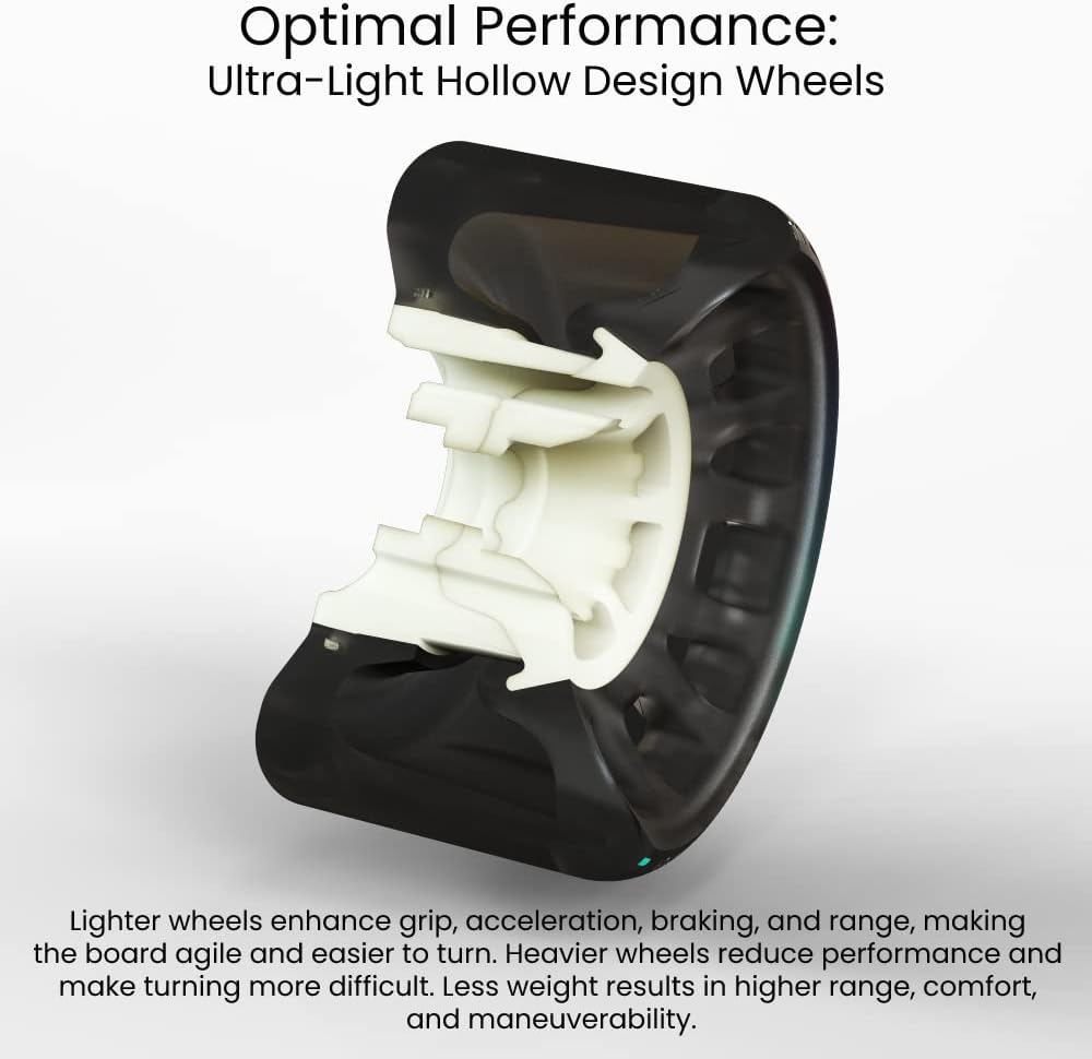 • ✅ أخف عجلة لوح تزلج في الفئة: 299 جرام يتيح الوزن المنخفض للحفاظ على لوح التزلج الخاص بك ذكيًا وقادرًا على تغيير الاتجاهات بسرعة. هذه هي العجلة الأخف في فئتها بسبب الطبيعة المجوفة.