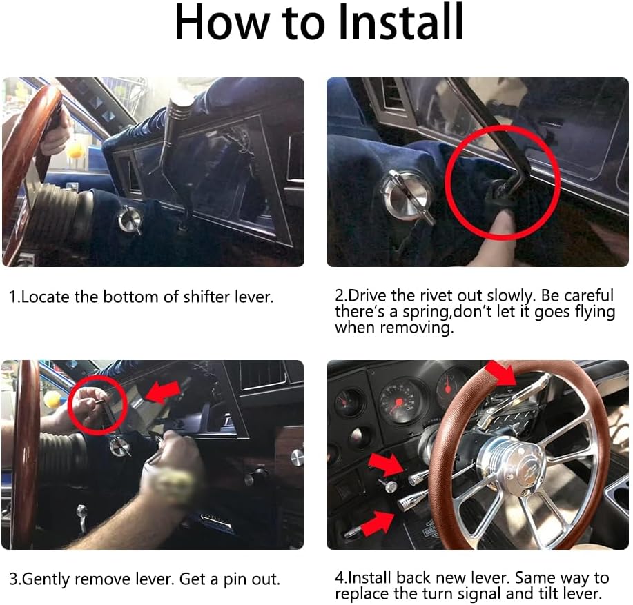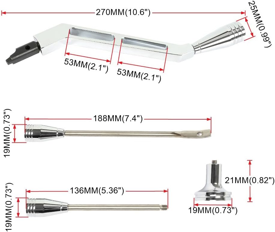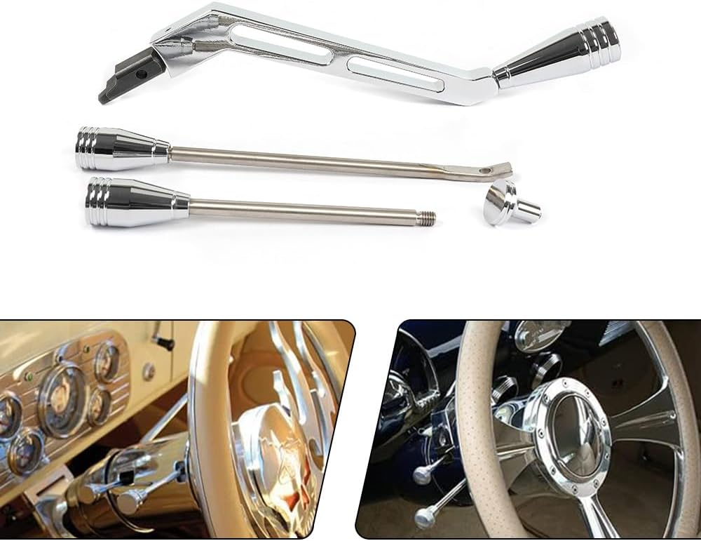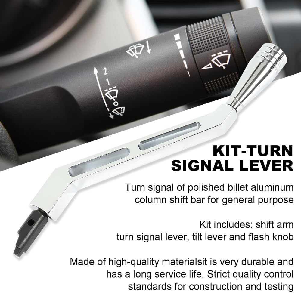 الأبعاد: ذراع ناقل الحركة 9 بوصة، رافعة إشارة الانعطاف 7 بوصة، رافعة إمالة 5.5 بوصة، مقبض فلاش 3/4 بوصة.