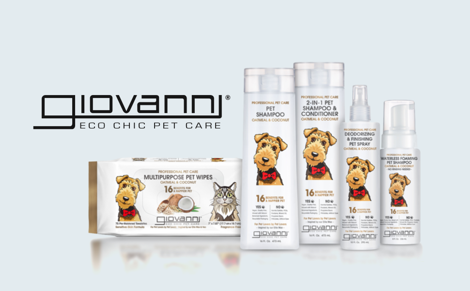 FRESHENS FUR - Touch up your pet with GIOVANNI's exclusive natural blend! This natural blend will leave your furry friend with conditioned hair that creates a beautiful shine and healthy coat