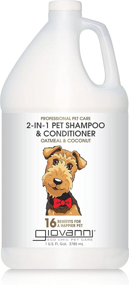 GIOVANNI Professional 2 in 1 Shampoo & Conditioner contains 7 powerful ingredients that were chosen to meet your pet's skin and fur care needs - starting with Colloidal oatmeal, which includes Vitamins B & E to help maintain a shiny and healty looking coat. Coconut Oil naturally creates a protective barrier onto your pet's coat to help prevent fur from environmental damage and pollutants while leaving a soft feel. Hemp See Oil contains fatty acids while nutritious Aloe deeply moisturizes any dry spots. Chamomile and Lavender Extract help calm unruly, static-filled fur. Olive oil contains hydration properties that smooth and help strengthen all coat types.