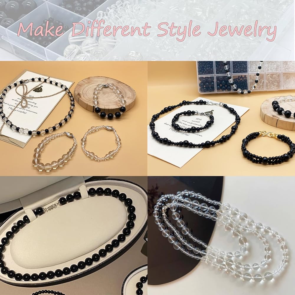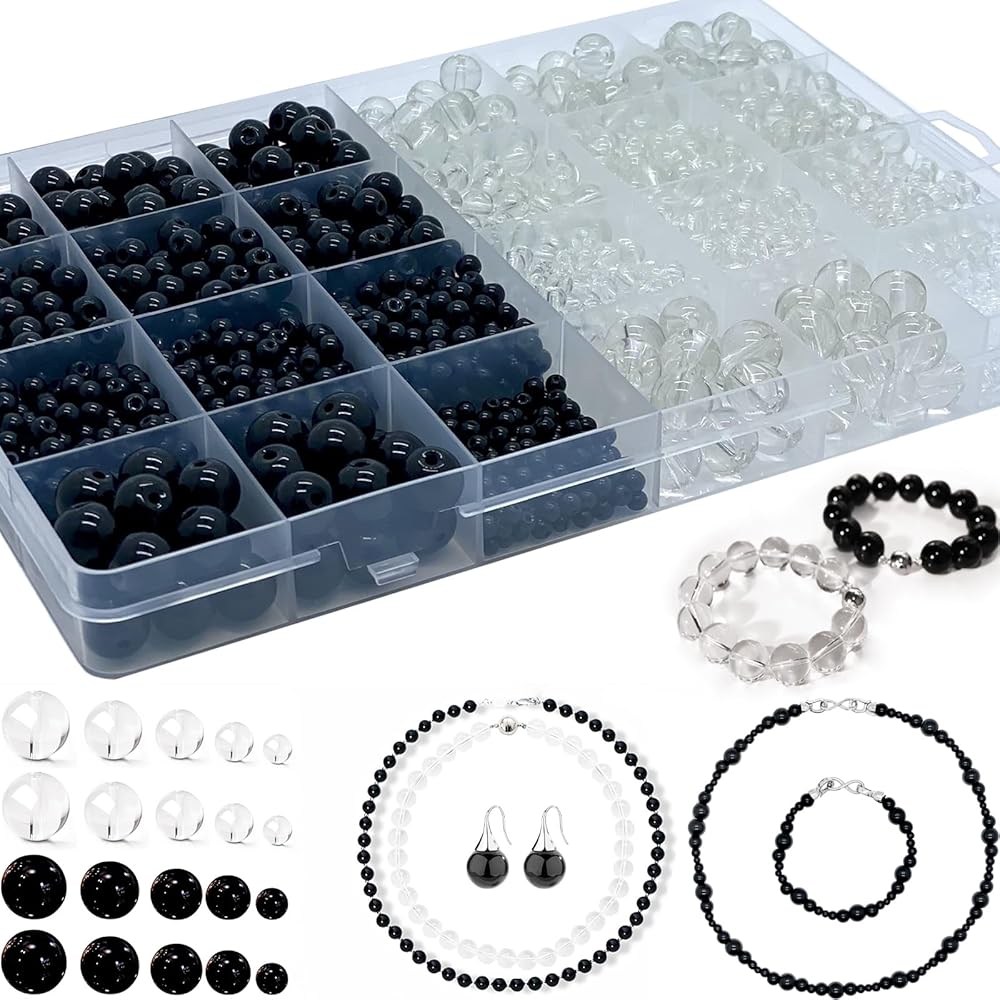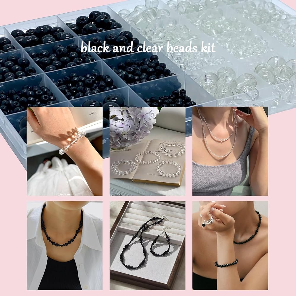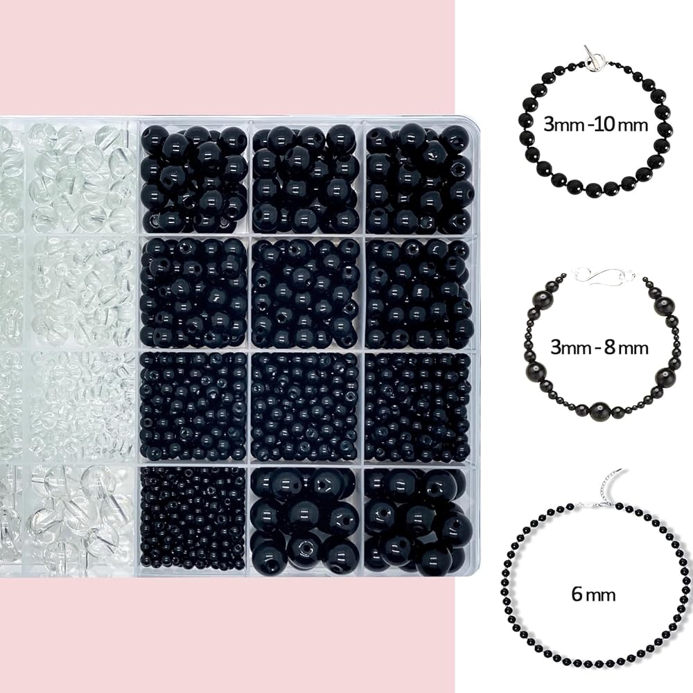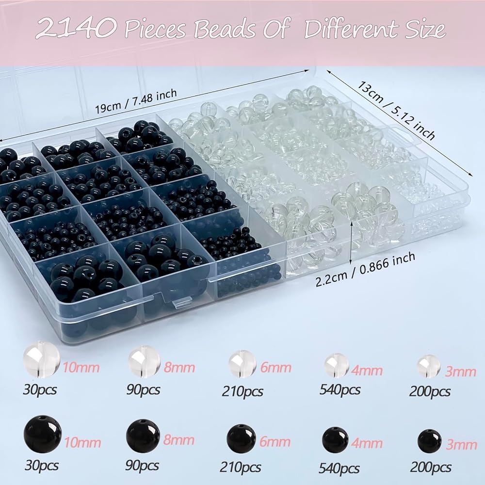 friends and lovers.This black round glass beads making kit is stored in 28 compartments box by size,convenient for your use and storage