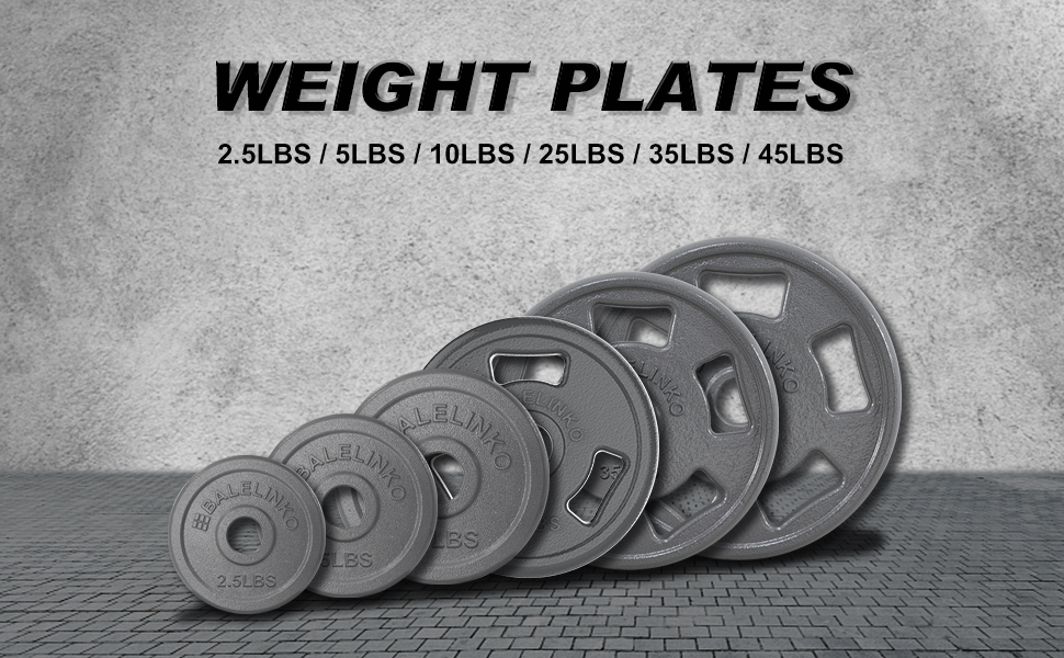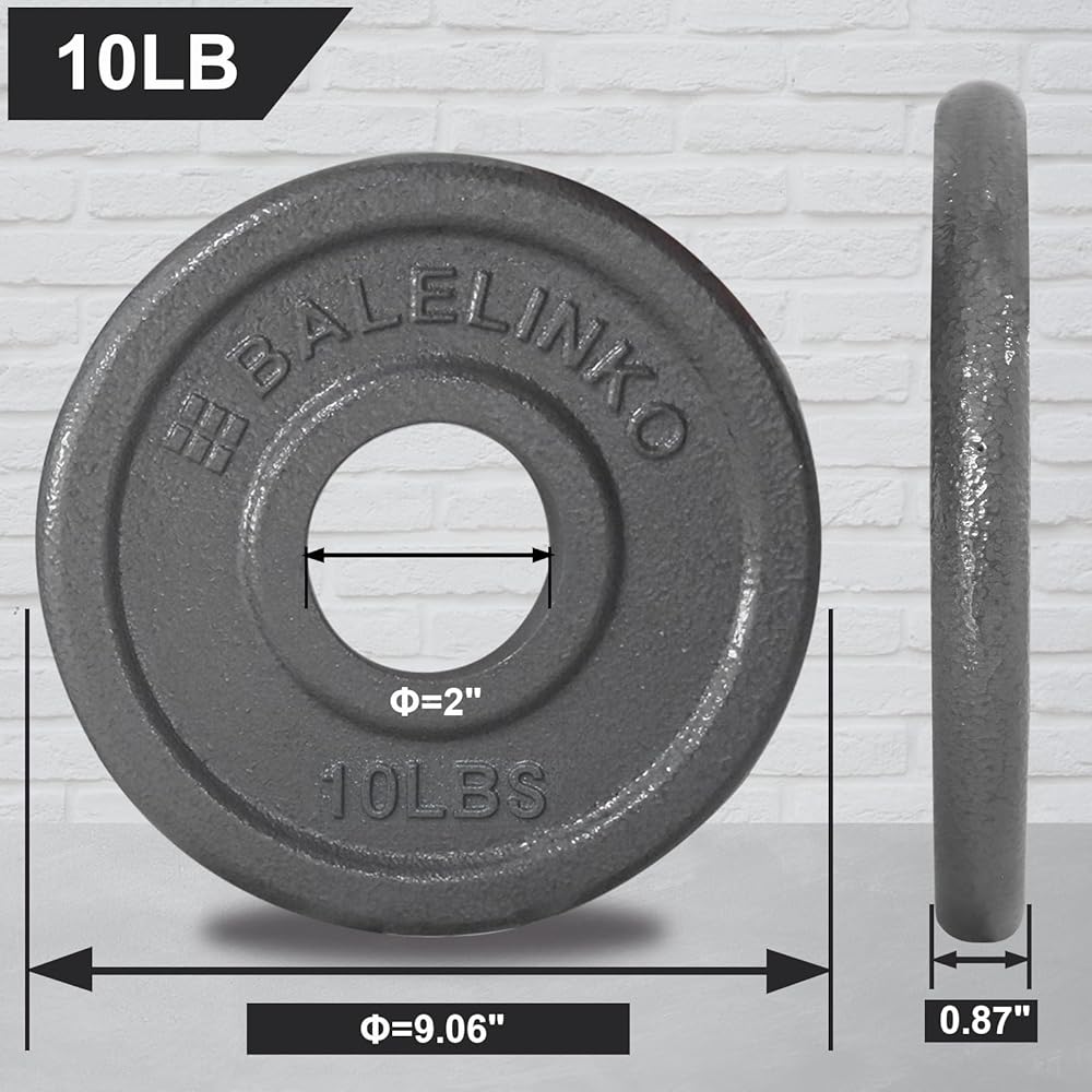 اختيار متعدد الاستخدامات للوزن: اختر من بين مجموعة متنوعة من خيارات الوزن مع ألواح وزن بمقبض من الحديد الزهر مقاس 2 بوصة من Balelinko، متوفرة بأوزان 2.5 و5 و10 و25 و35 و45 رطلًا.