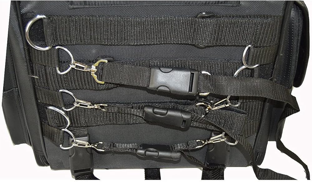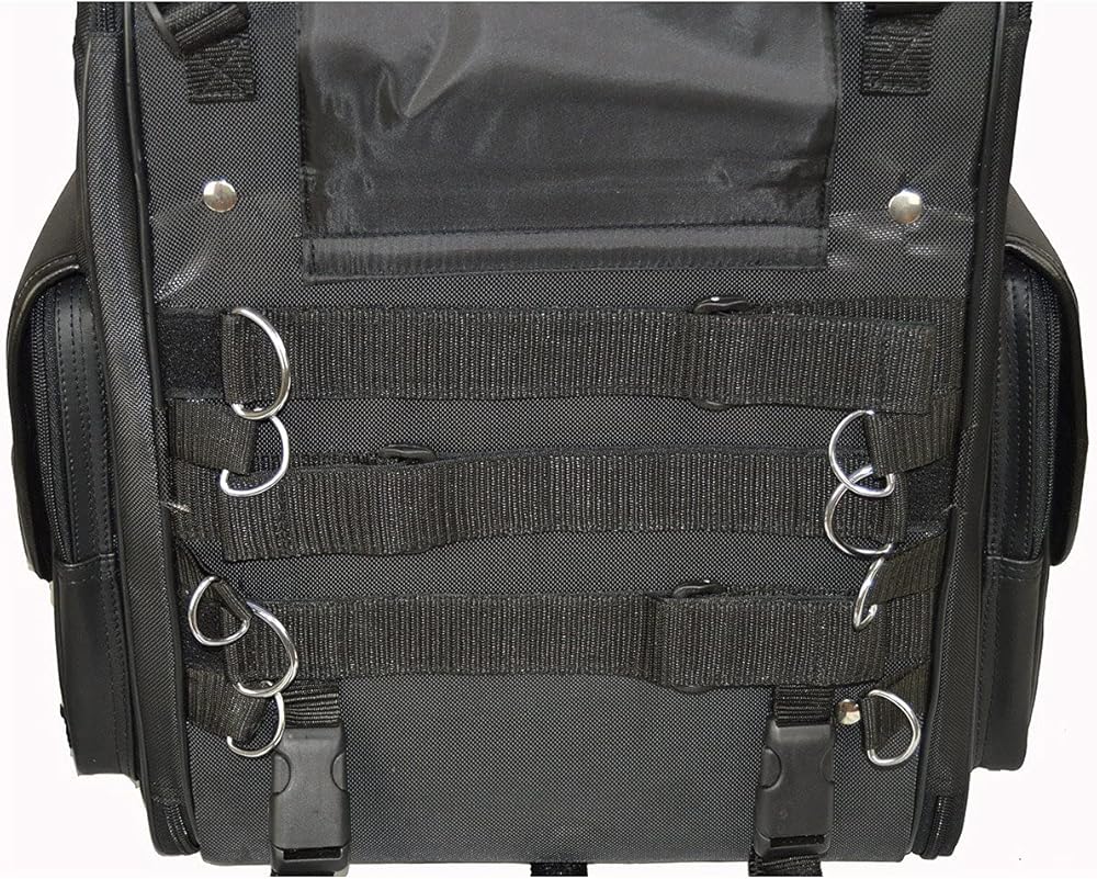 حقيبة فانس الجلدية للدراجة النارية سيسي بار - حقيبة أمتعة سوداء للدراجات النارية مقاومة للطقس مع مساحات تخزين متعددة، منصة تثبيت قابلة للتعديل، غطاء مطر قابل للإزالة