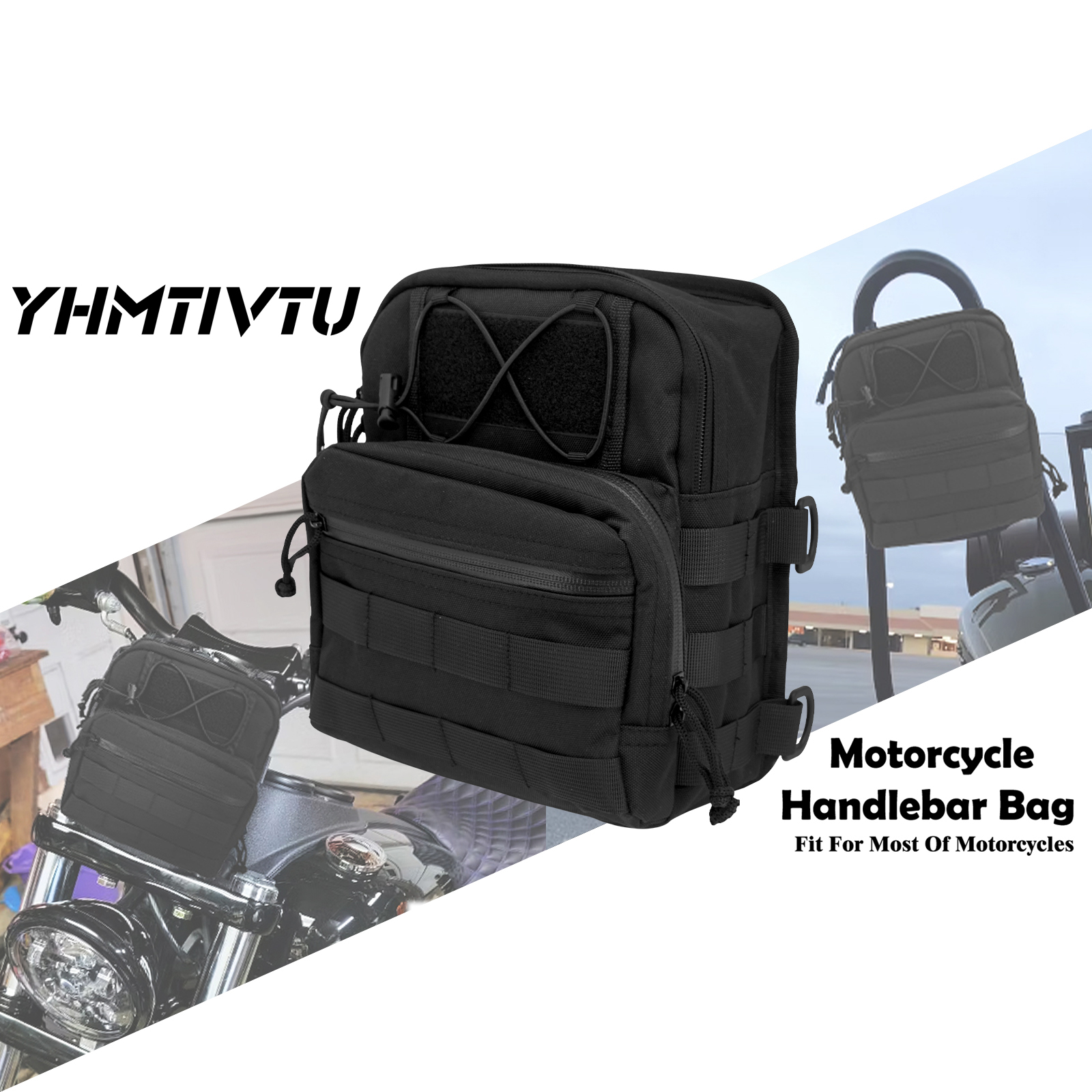 YHMTIVTU حقائب المقود العالمية للدراجات النارية حقيبة الشوكة الأمامية حقيبة مقبض الدراجة حقيبة المقود T-Bar حقيبة أداة الحقيبة حقيبة تخزين صندوق السيارة مناسبة لـ Harley Dyna Street Bob FXBB Softail Sportster Cruiser