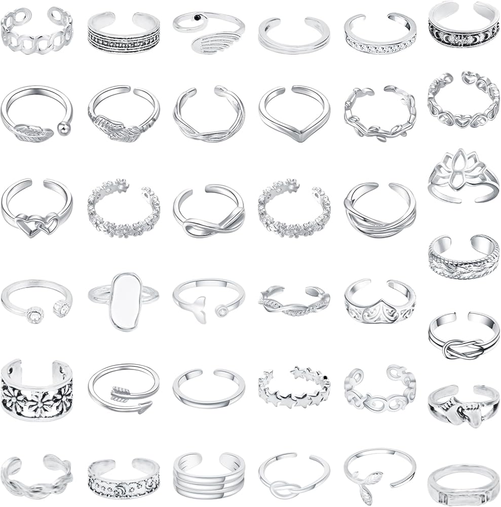 • Unique design: there are 36 different styles of these simple toe rings, all adjustable opening, according to the size of your toe can adjust the size of the ring, can be worn as toe rings, knuckle ring, stacking rings, and tail ring. And the adjustable rings can be given to your friends without worrying about the size is not appropriate.