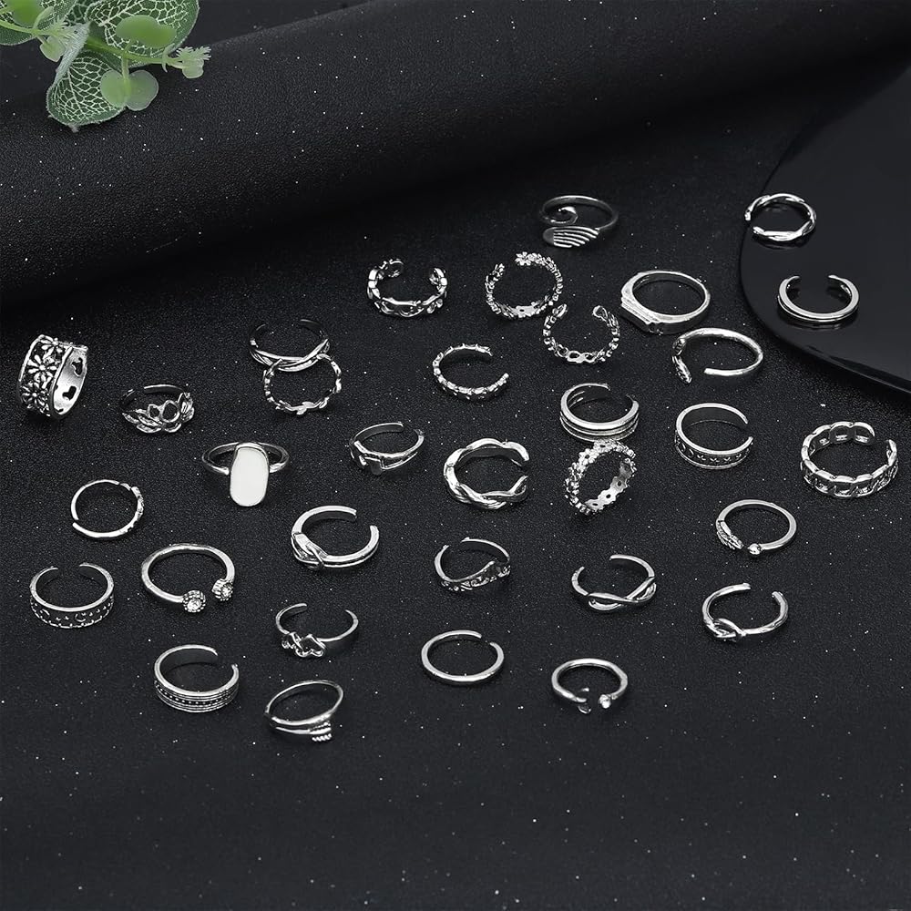 • Package included: You will get 36 pieces toe rings for women, you can wear different rings every day, or you can wear several at the same time, with a variety of styles for you to choose from freely.