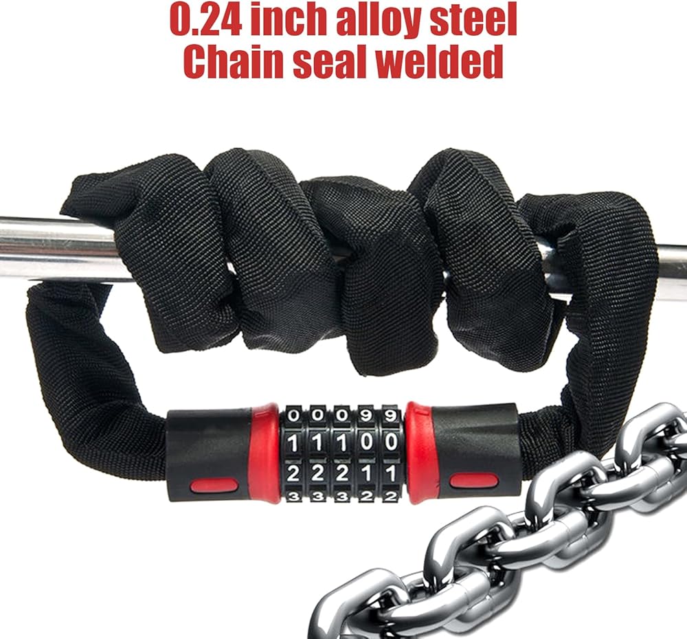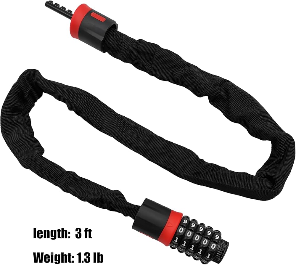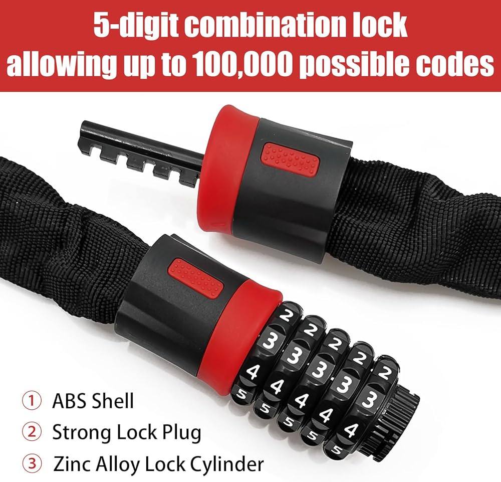 🔒High Security: Our bike chain lock features a smart 5-digit resettable combination, offering 100,000 password combinations for maximum security. With this lock, it becomes nearly impossible for unauthorized individuals to unlock your bike.