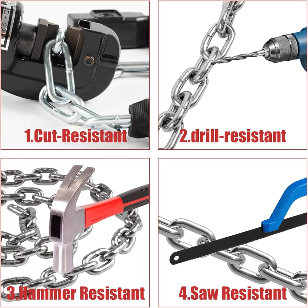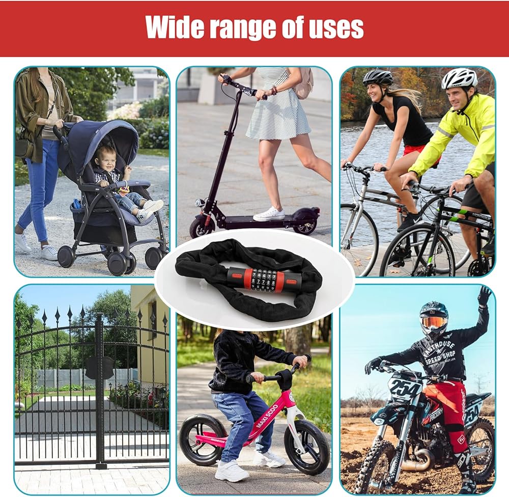 🔒Versatile Use: This bike chain lock is not just for bicycles. It is also suitable for securing skateboards, sports equipment, gates & fences, grills & lawnmowers, tools, tool boxes & ladders. Its multi-functionality makes it a great investment.