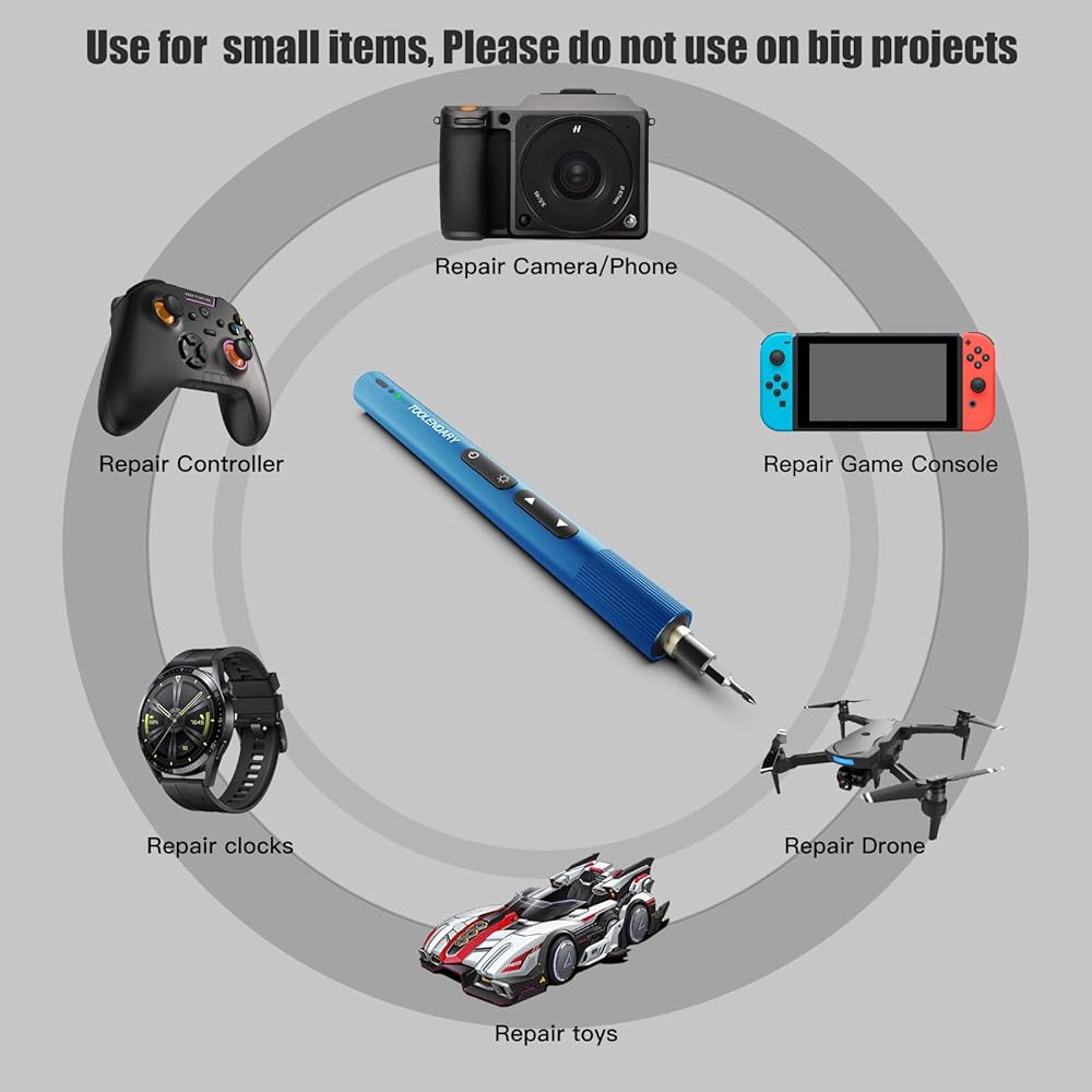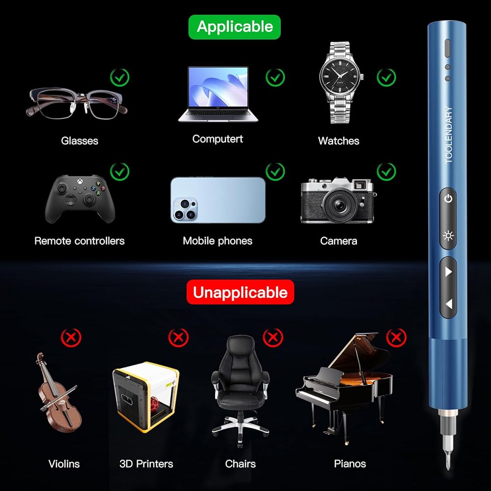 مجموعات مفك كهربائي صغير 55 في 1: لون مفك البراغي: أزرق؛ مفك براغي كهربائي دقيق سهل الاستخدام؛ خفيفة الوزن ومحمولة. تشتمل مجموعات المفكات القابلة لإعادة الشحن على 55 قطعة مرفقة، ولديها مجموعة كبيرة من أنواع رؤوس البراغي المتوافقة بشكل أساسي مع معظم الأشياء. تشتمل مجموعات الأدوات الكهربائية على ممغنط/مزيل مغناطيسي لتقليل مخاطر السقوط، ومفك براغي عزم الدوران منخفض الضوضاء أثناء عملية العمل، ومفك براغي صغير للطاقة للاستخدام مع الأجهزة الإلكترونية الصغيرة.