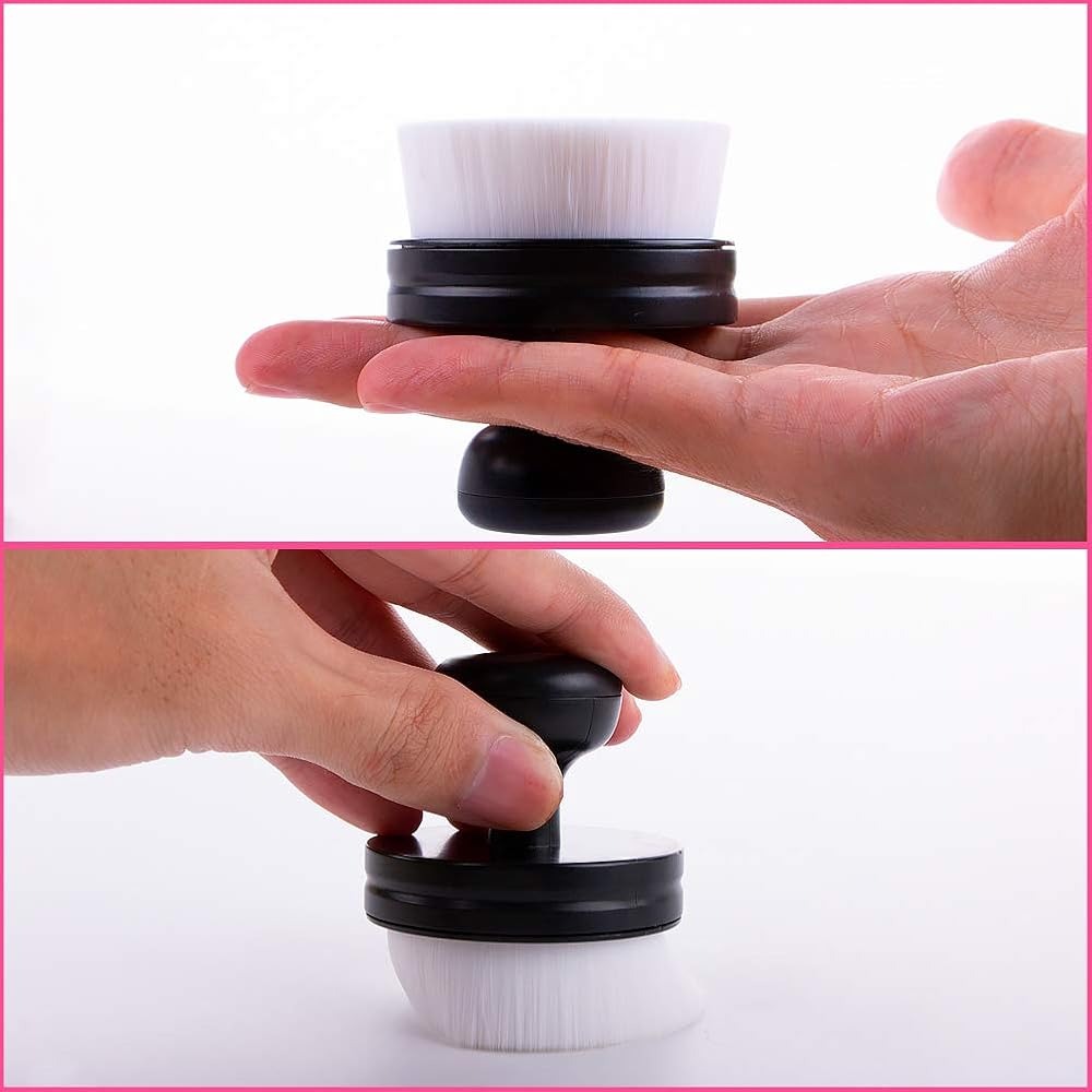 1.material: White high-quality fiber with a clean appearance. The brush head is soft, compact, comfortable, aesthetically pleasing and has a dense fiber bristles.This hybrid brush has a storage base for easy storage and portability.
