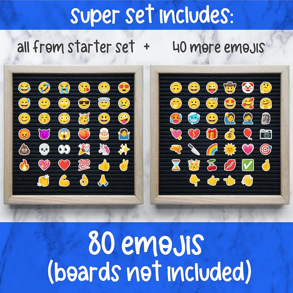 You asked for them, and here they are. Real plastic emojis that you can use on your felt letterboard. Each set is chosen from some of the most commonly used emojis. More emojis = more fun.