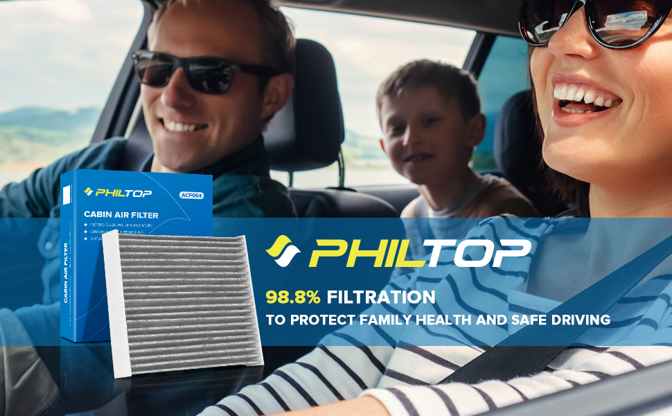 • ترشيح ثلاثي الكفاءة: تتكون فلاتر هواء كابينة PHILTOP من ثلاث طبقات توفر ترشيحًا يصل إلى 99%، مما يساعد على منع دخول الغبار والسخام وحبوب اللقاح والملوثات الأخرى المحمولة بالهواء إلى السيارة