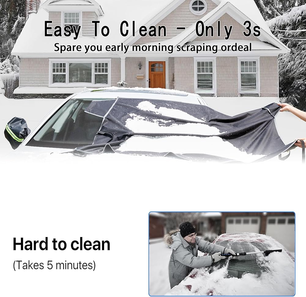 [لا مزيد من مشاكل الخدش] - أغطية الثلج للزجاج الأمامي للسيارة من DooGooCoo تحمي سيارتك من جميع الأضرار المرتبطة بالثلج، مثل الصقيع والبرد والعواصف الثلجية والعواصف الثلجية أيضًا. تنظيف الزجاج الأمامي في ثوان للذهاب!
