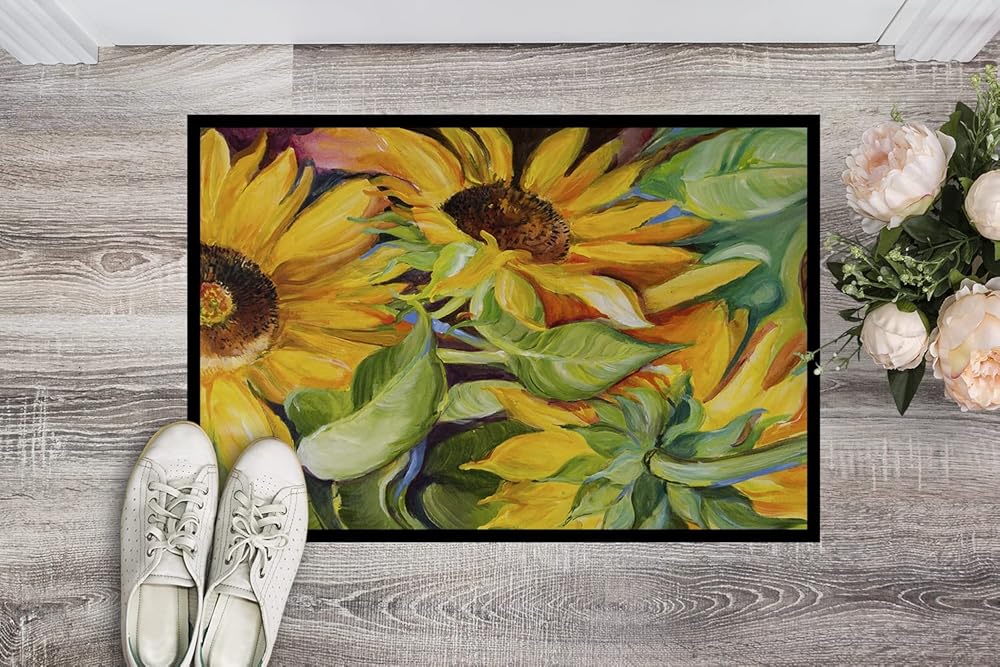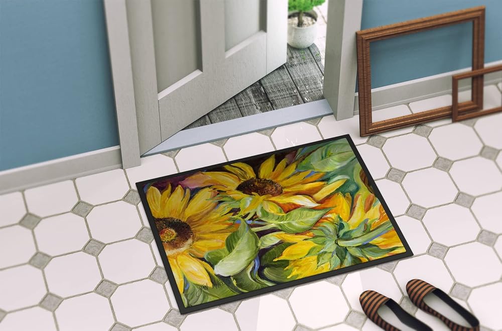 كنوز كارولين JMK1122MAT ممسحة عباد الشمس مقاس 18 × 27 سجادة باب أمامية للأماكن المغلقة والمفتوحة للمدخل، غير قابلة للانزلاق وقابلة للغسل، كومة منخفضة، 18 ساعة × 27 عرض