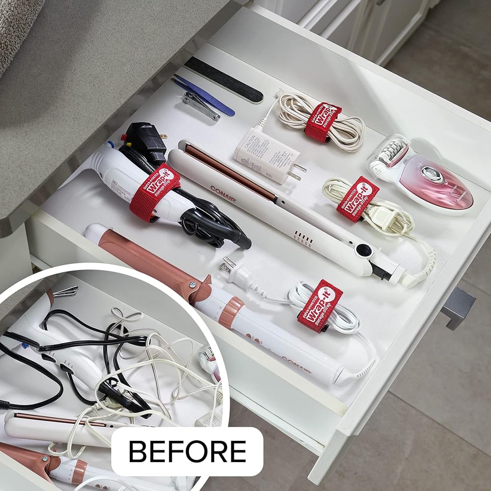 Super-Stretch Wrap-It Storage Straps are a super flexible way to get organized. Made with super-stretch elastic hook and loop so these cinch straps can wrap tight and secure! Quick and easy to use, simply wrap and store extension cords, air hoses, corded tools, audio cables, water and garden hoses, air hoses, pool hoses, vacuum hoses, ski rope, tow rope, dock line and so much more! Use Super-Stretch Wrap-It Storage Straps to get untangled and organized in the garage, workshop, shed, car, truck, boat, RV or around the house. GREAT GIFT: These Super-Stretch Wrap-It Storage Straps make for a great practical gift for home owners, DIYers, tradespeople, RV and camping enthusiasts, boating enthusiasts, Father's Day, and birthdays for men. Customer favorite uses for these straps: extension cord organizer, cord storage, cord wrap, power cord organizer, cord keeper, cable straps, garden hose organizer, rope cinch strap, marine strap, air hose organizer, RV water hose storage, RV storage solutions, garage organizer, bike wheel strap, bike strap for rack.