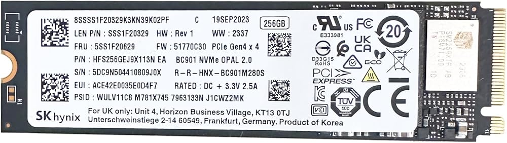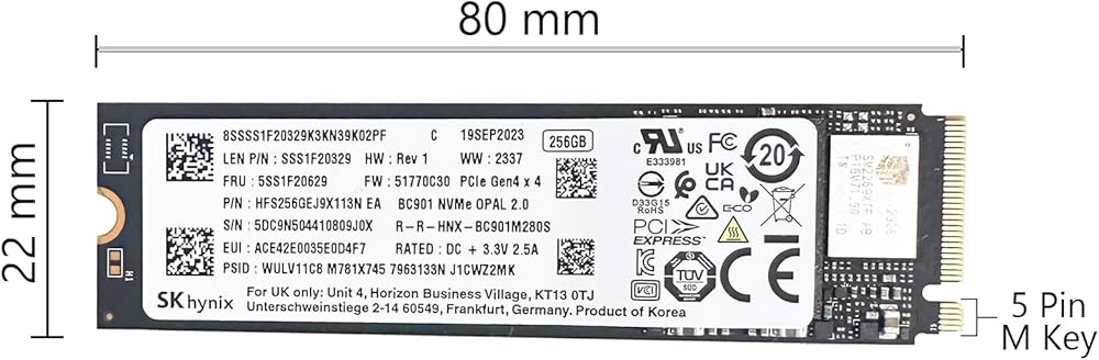 - Capacity: 256GB / Interface: M.2 2280 PCIe NVME SSD