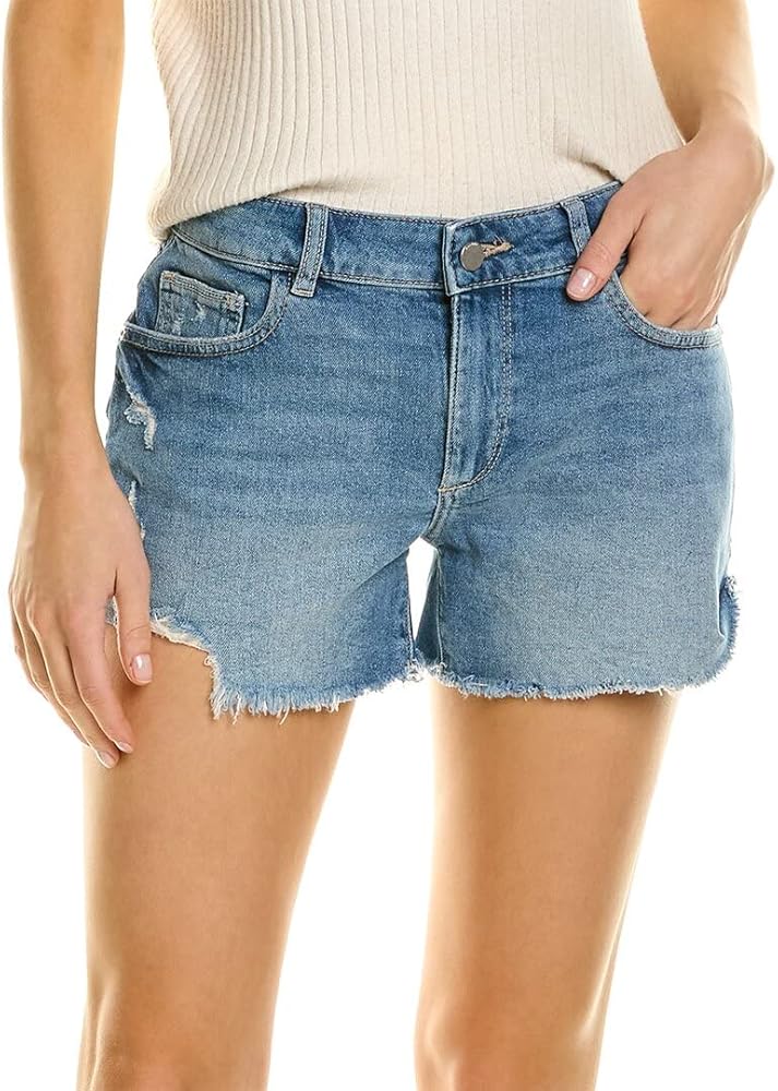 Casual chic. Boyfriend short has a mid rise, slouchy fit, and cuffed hem. Karlie is a clean white wash with shredded details for a chic warm-weather look. Combination of innovative stretch fibers allow for the ultimate contouring effect with maximum recovery. Five-pocket construction. Tonal topstitching. Copper hardware. Signature initial embroidery on the right rear pocket. Belt loop waistband. Zipper fly and button closure. 67% cotton, 31.5% TENCEL, 1.5% LYCRA Machine wash cold, line dry.