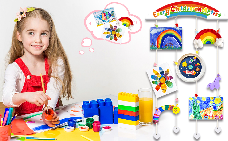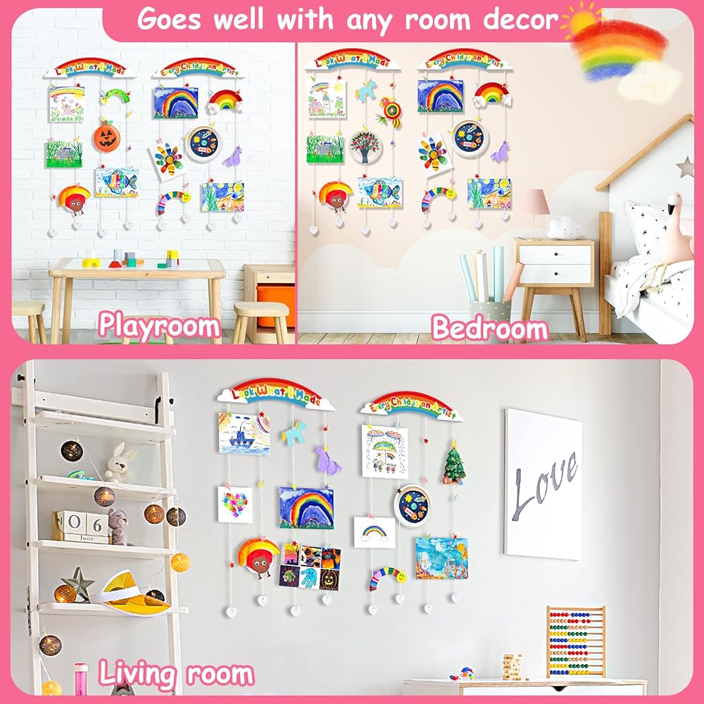 ديكور مفيد لغرفة الأطفال - يمكن وضع العرض الفني المعلق للأطفال هذا في غرفة طفلك الصغير أو فتاتك، أو في غرفة اللعب، أو المطبخ، أو أي مكان في المنزل أو الفصل الدراسي لإظهار تحفة بيكاسو الصغيرة، وإظهار إبداعهم وإبراز إنجازاتهم.