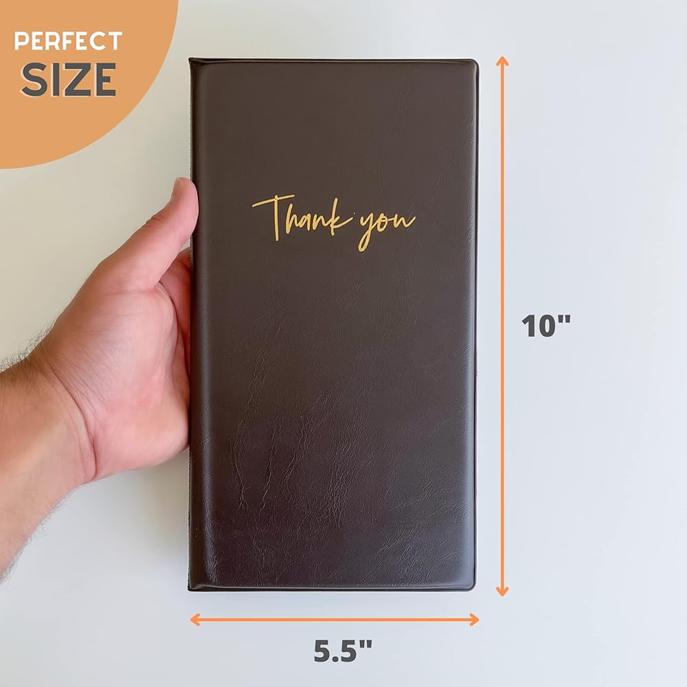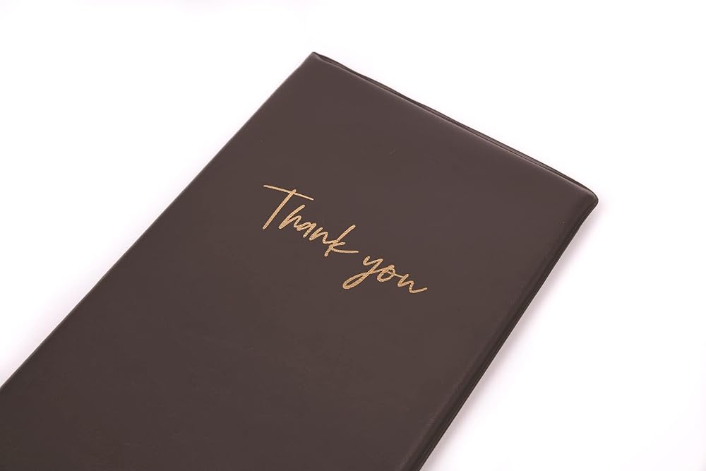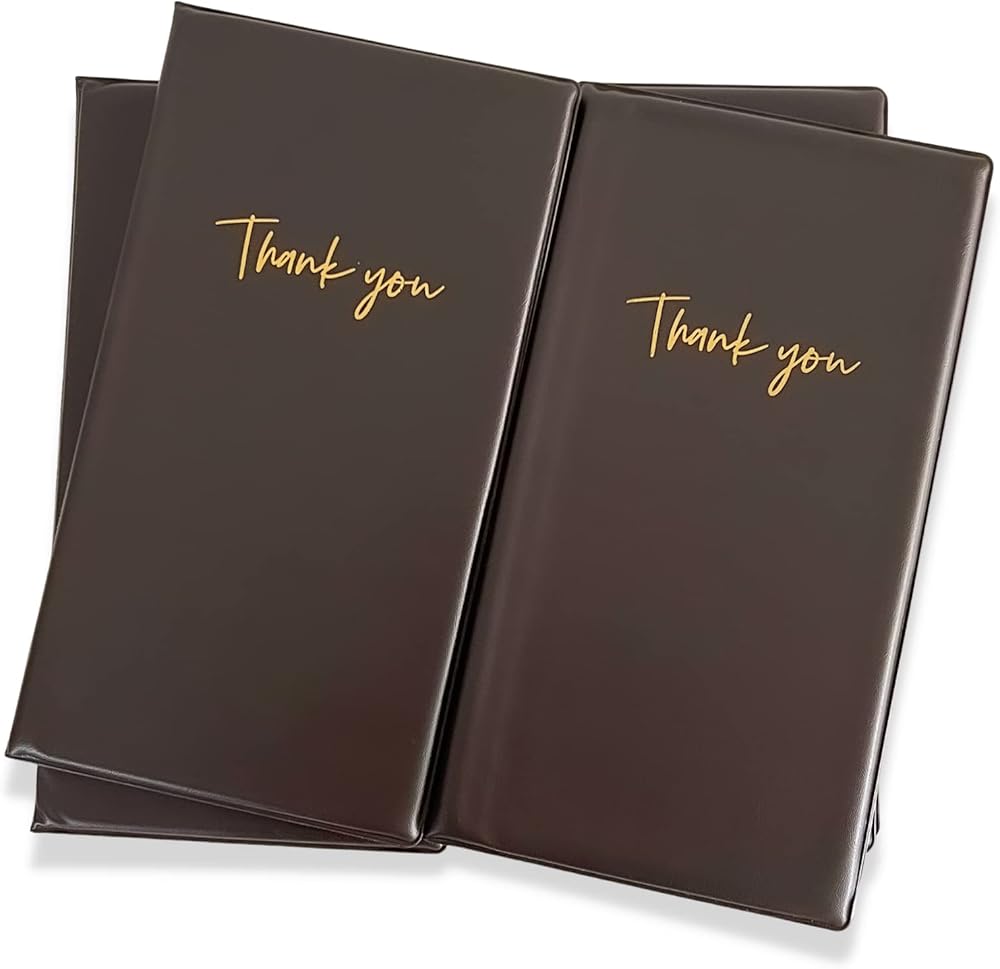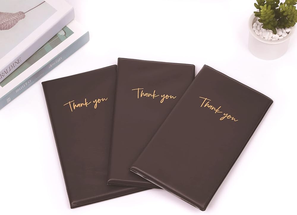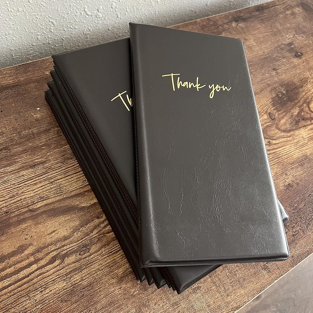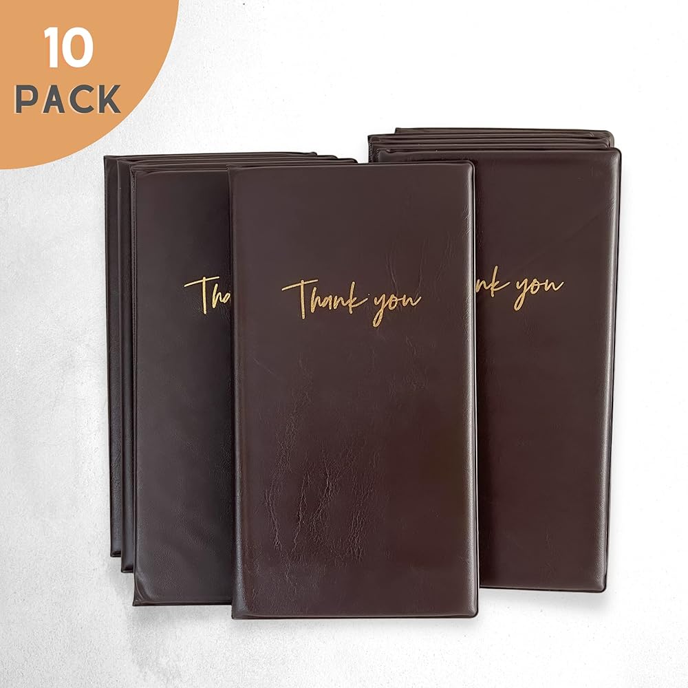أولبيا 10 عبوات من مقدم فحص الضيوف للمطاعم، كتاب خادم بني، حامل قائمة من الجلد الصناعي للمقاهي، شكرًا لك على تقديم الفاتورة بكميات كبيرة (بني)
