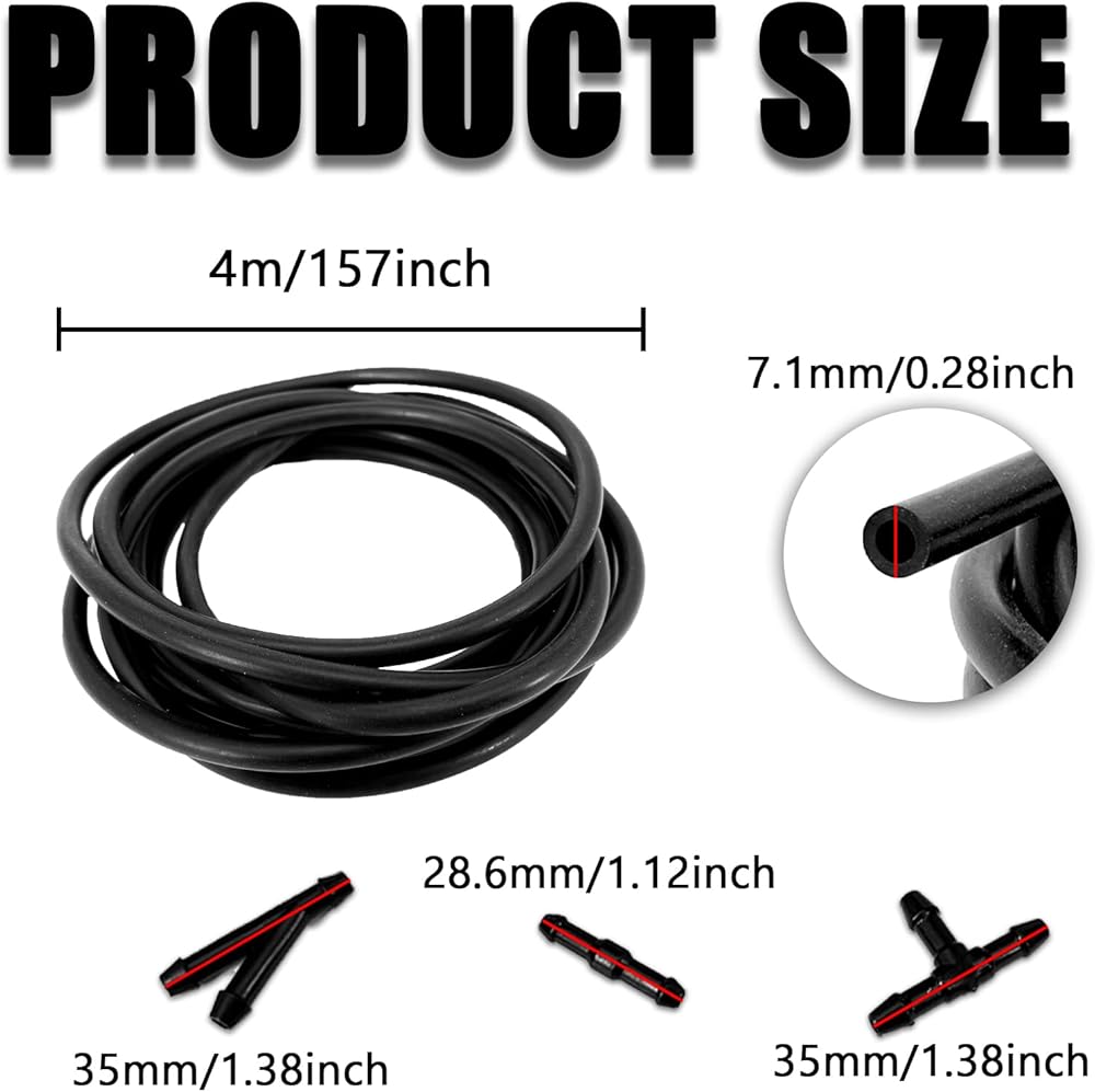 • 【Package Included】The package contains 1x 4m/157inchs windshield washer hose, 12x windshield wiper hose connectors( 4x Y type, 4x I type, 4x T type).