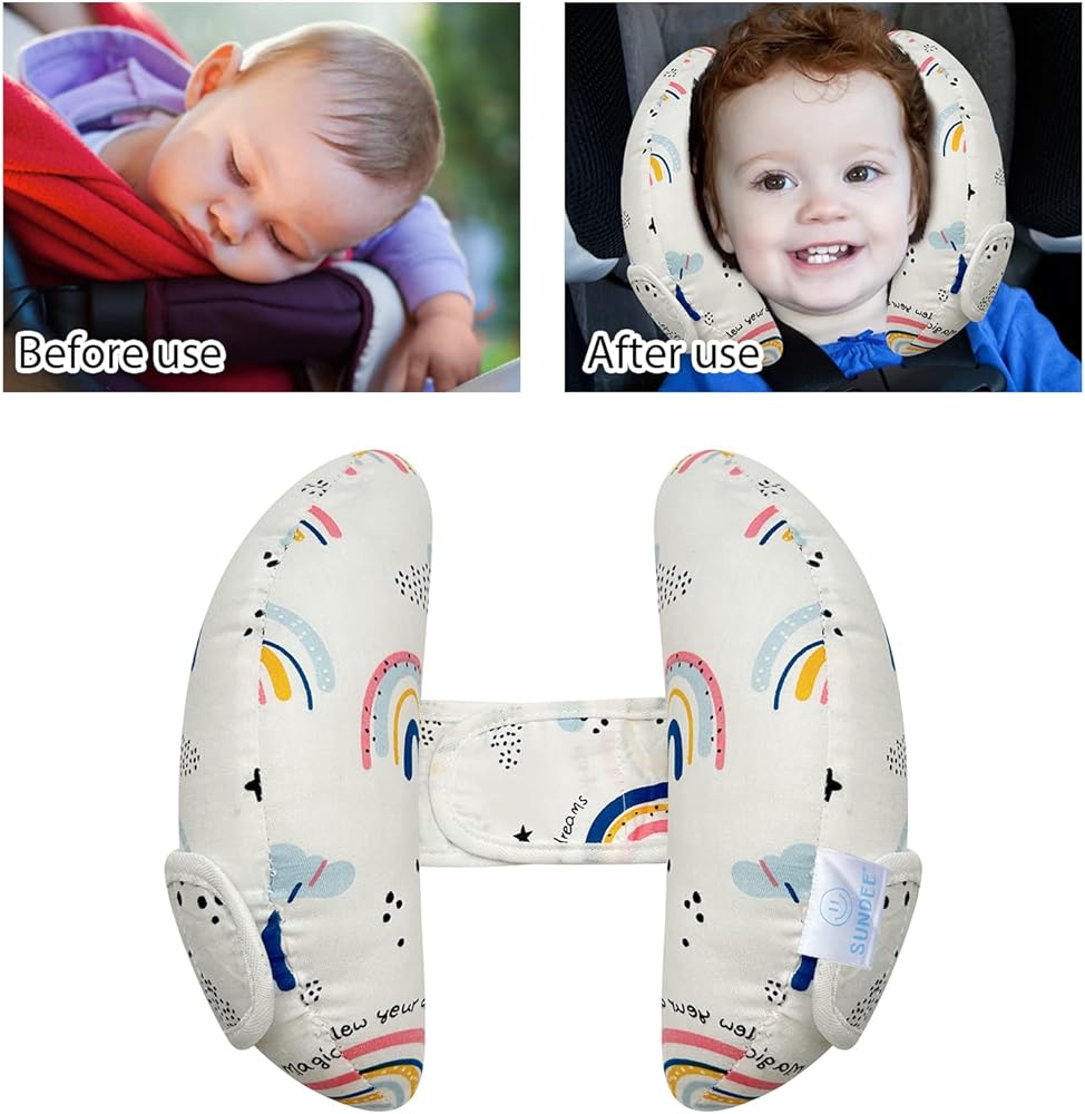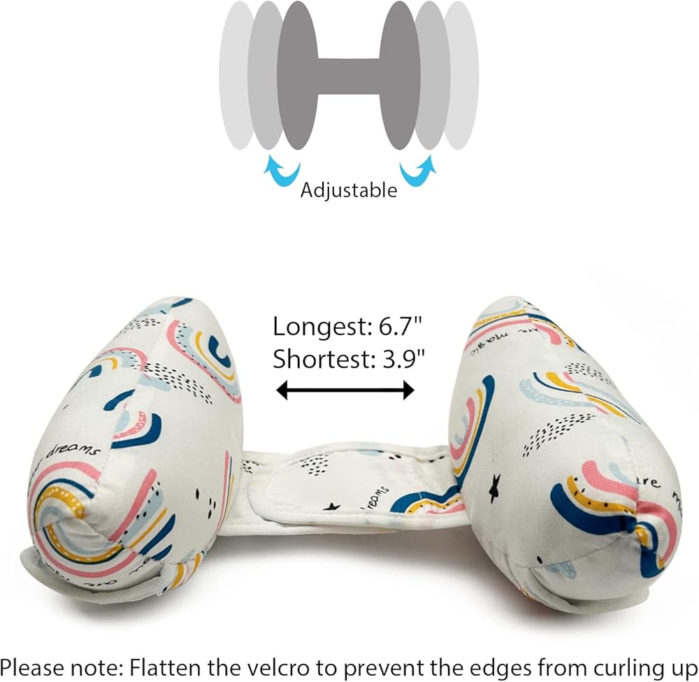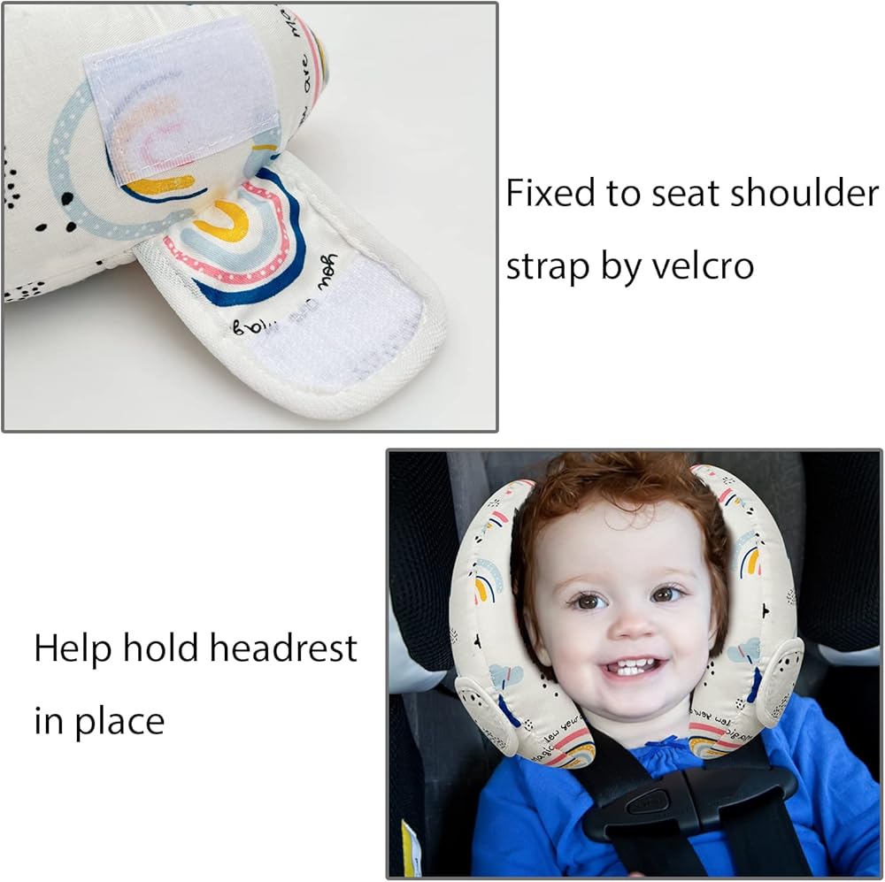 Practical design -- The connections between our banana-shaped travel headrests are designed with Velcro so you can adjust the spacing according to your baby's head circumference and adjust as your baby grows.