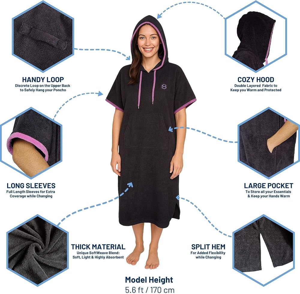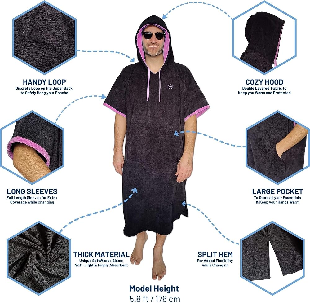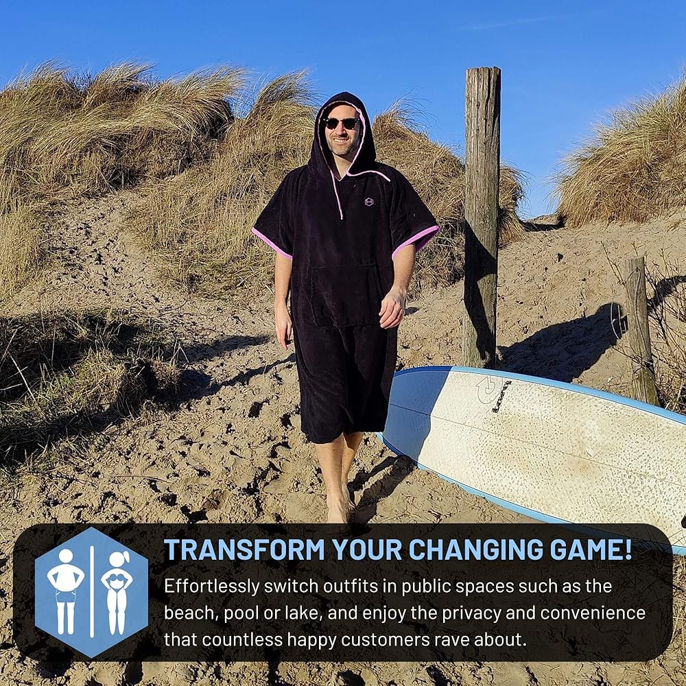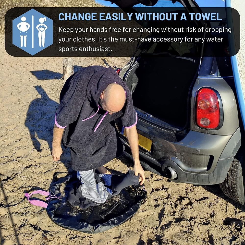 👕 قم بالتغيير بسهولة - قم بتحويل لعبتك المتغيرة مع معطف منشفة ركوب الأمواج الخاص بنا! قم بتغيير ملابسك بسهولة في الأماكن العامة مثل الشاطئ أو حمام السباحة أو البحيرة، واستمتع بالخصوصية والراحة التي يهتم بها عدد لا يحصى من العملاء السعداء. أبقِ يديك حرتين لتغيير ملابسك دون التعرض لخطر سقوط ملابسك. إنه الإكسسوار الذي يجب اقتناؤه لأي متحمس للرياضات المائية.
