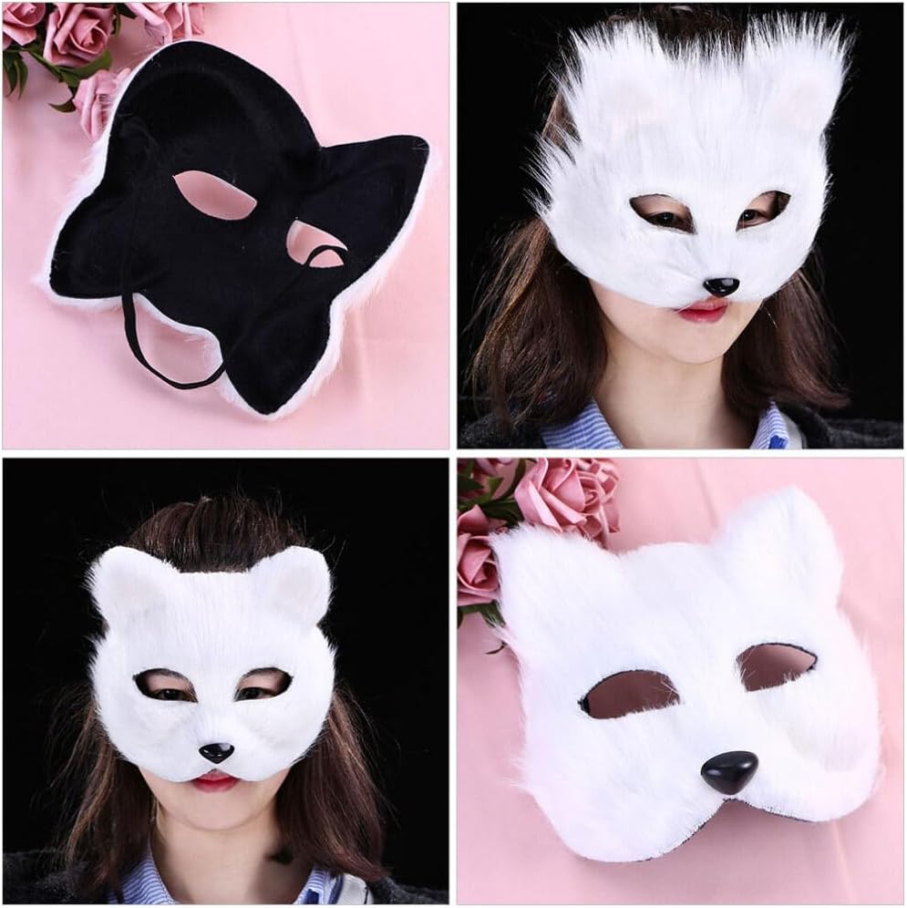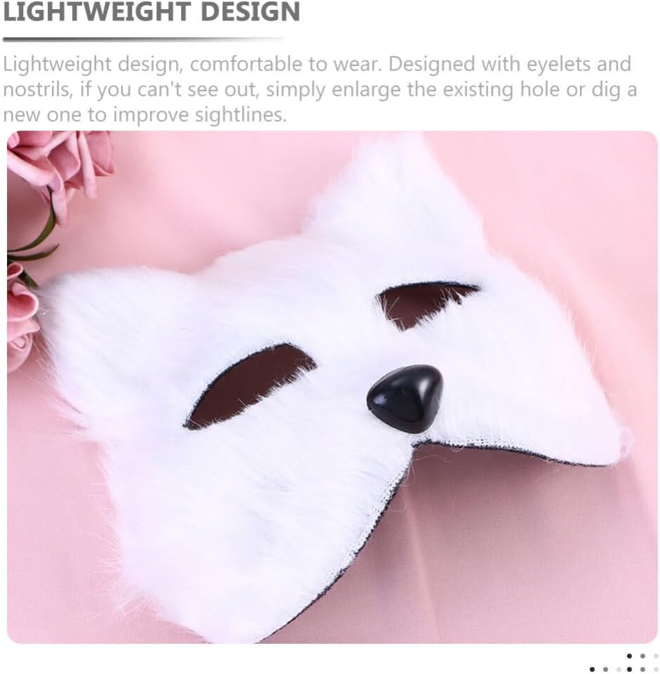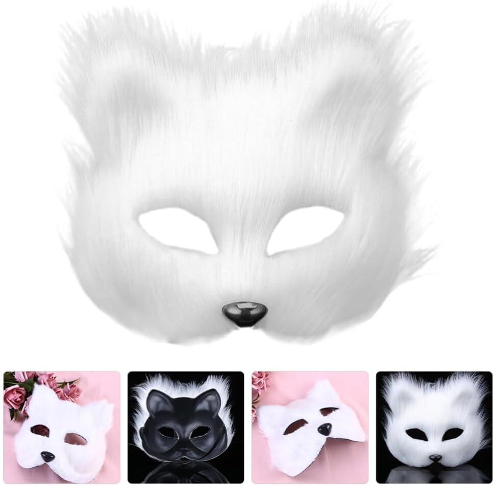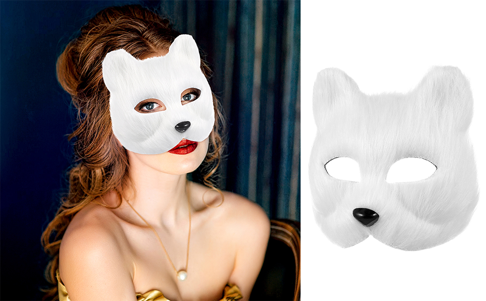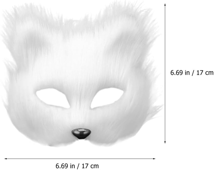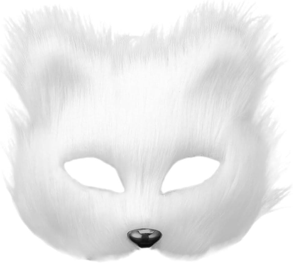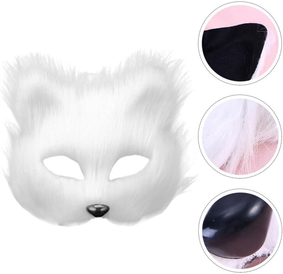 قناع VALICLUD Therian من فرو الثعلب الصناعي قناع ثعلب أبيض قناع تنكر نصف وجه على شكل حيوان فروي على شكل قطة أقنعة تنكرية قناع فرو صناعي قطيفة دعائم تنكرية لعيد الميلاد