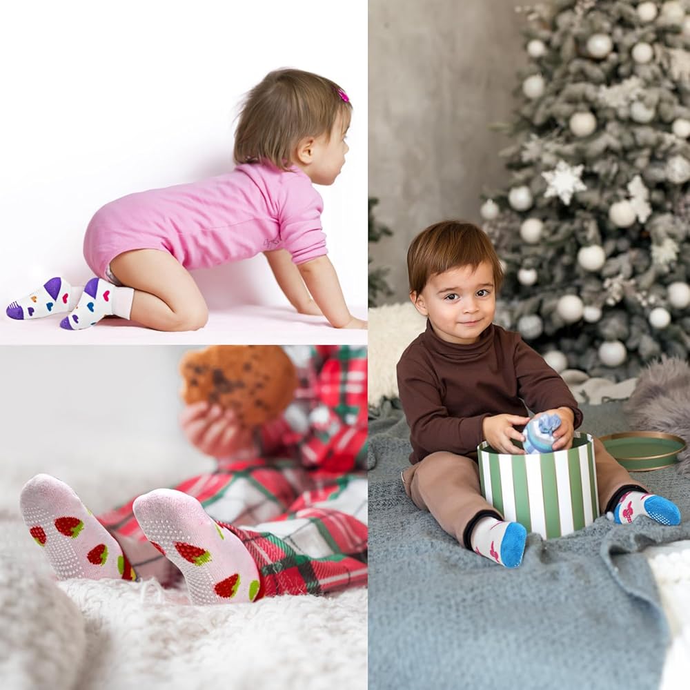 SKIBEAUT Baby Grips Socks for Newborn Infant Toddler Girls Boys Thick Cotton Turn Cuff Non Slip Anti Skid Socks