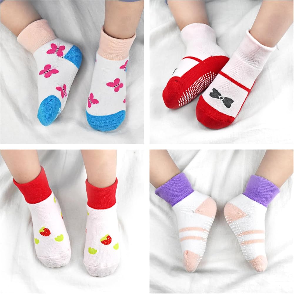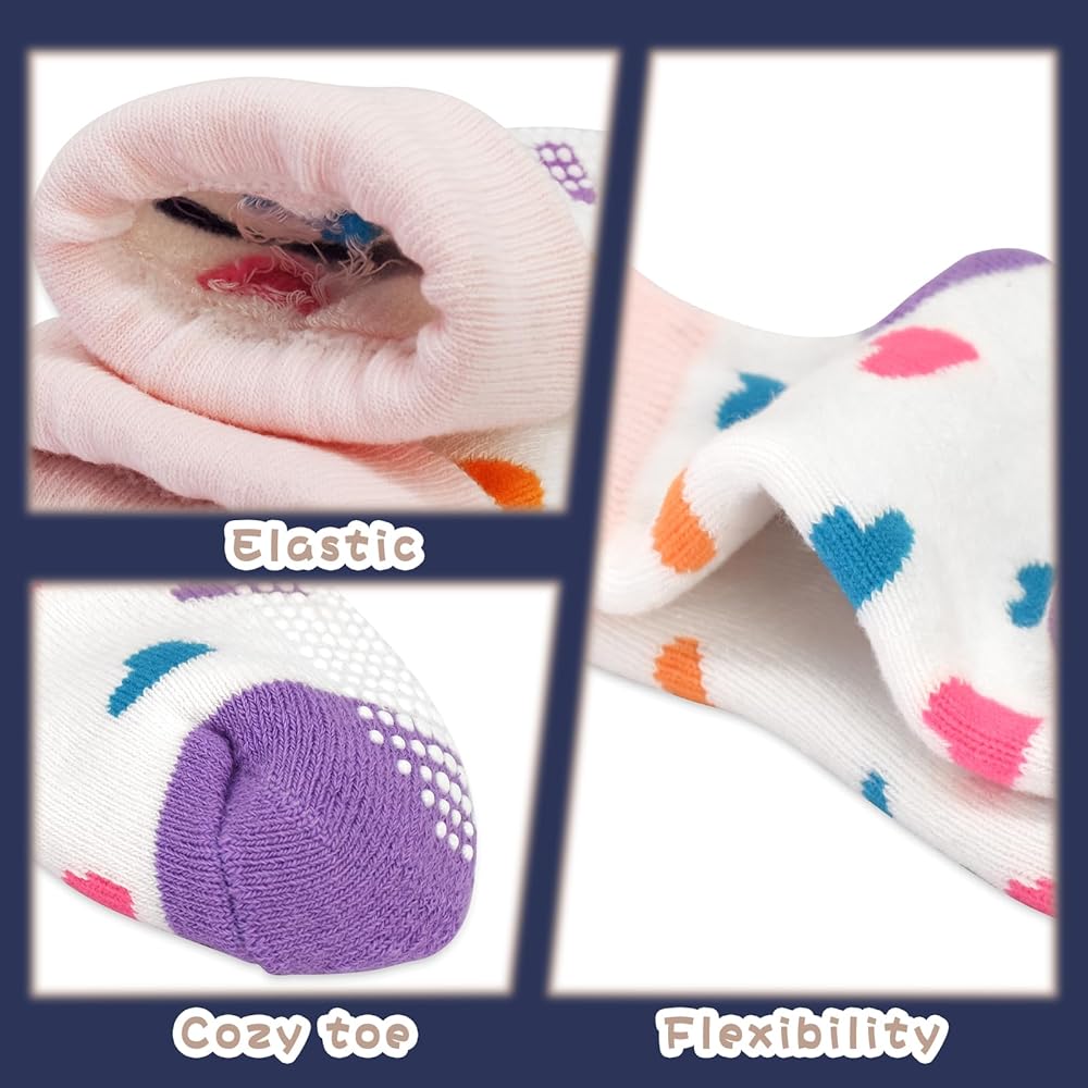 √ HIGH QUALITY CLOSE SKIN: SkiBeaut baby anti skid socks are made of high quality skin friendly Cotton, soft terry cover the entire sock, very soft and comfortable to wear, keep your babies' feet warm and cozy in cold weather. Our products will avoid causing friction between baby's feet and shoes and injuring them.